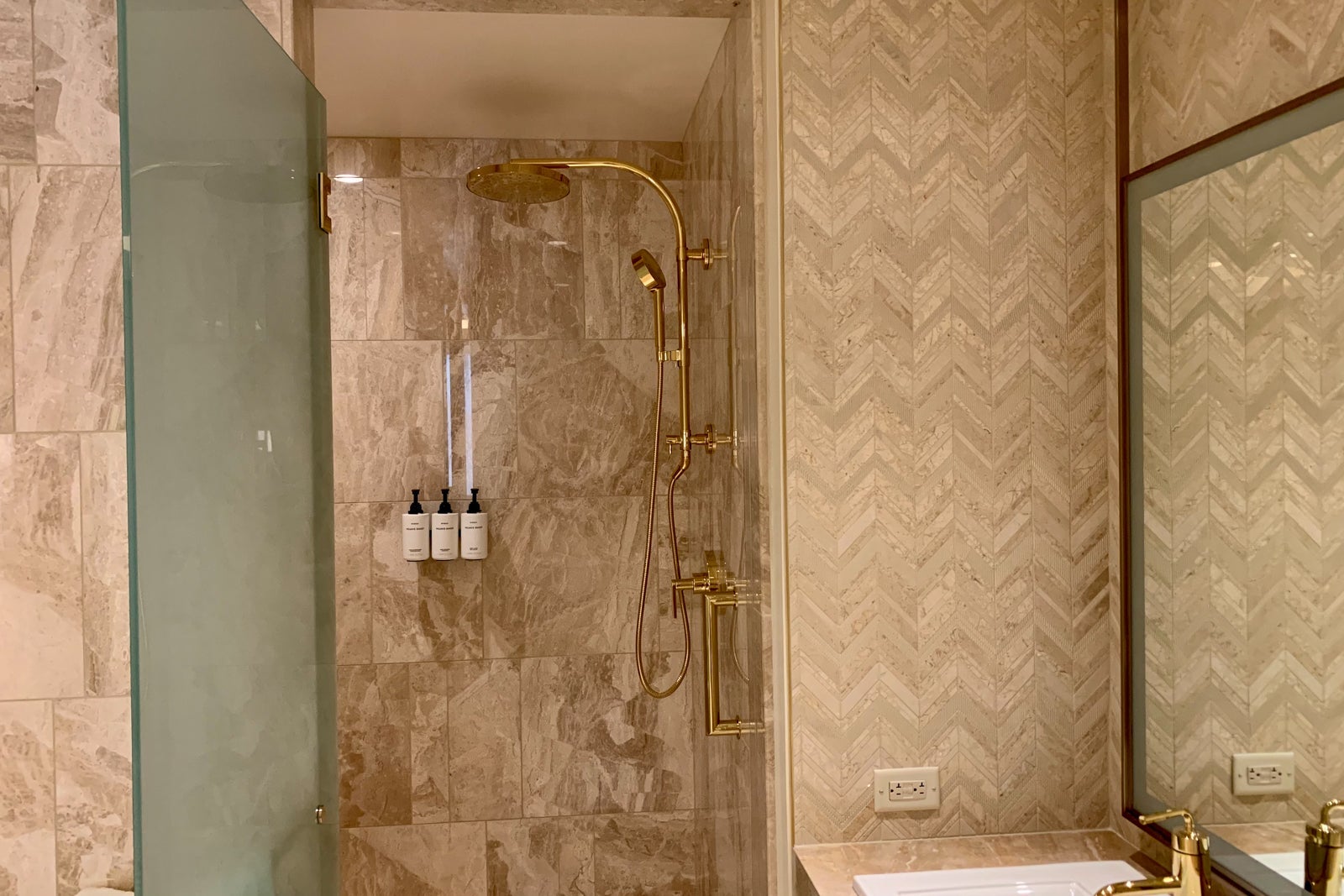 Thinking back to the strategic use of bling in the hotel's lobby, the aesthetic of the room made sense. It doesn't just lean into the muted tones of other Conrad properties but featured intentional splashes of red and gold.