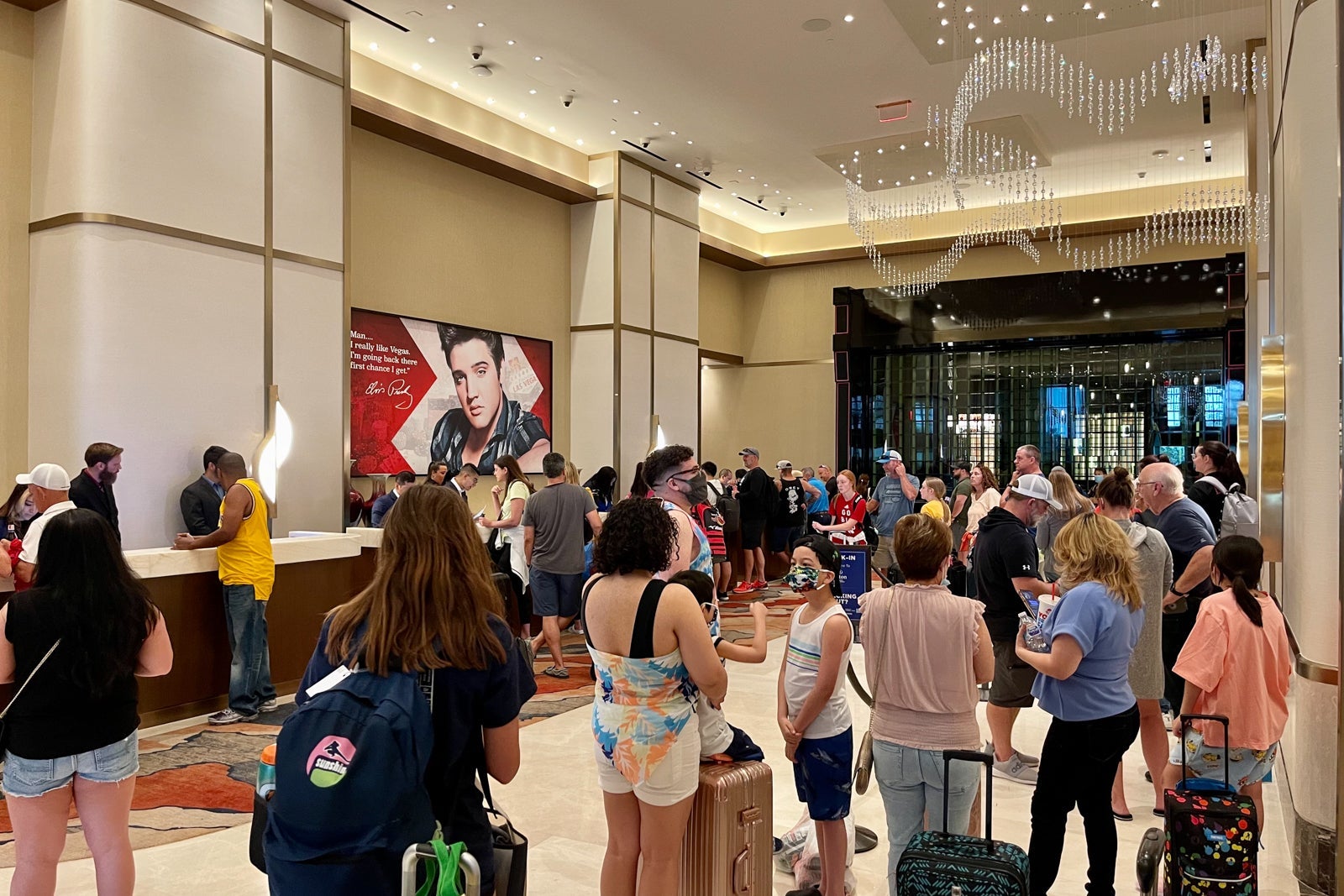 The place was bustling: the lobby was filled with a group of over 100 volleyball players waiting to catch a ride to a nearby competition. Visitors were streaming in and out of the casino floor. The wait for the elevator exceeded five minutes at one point.