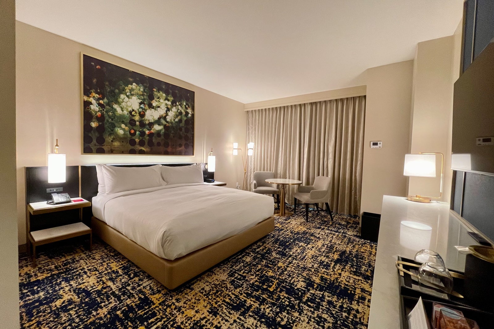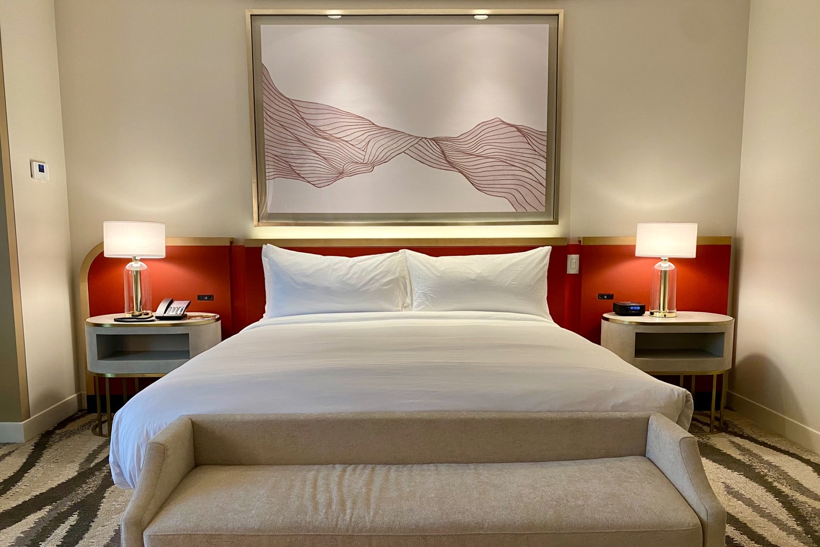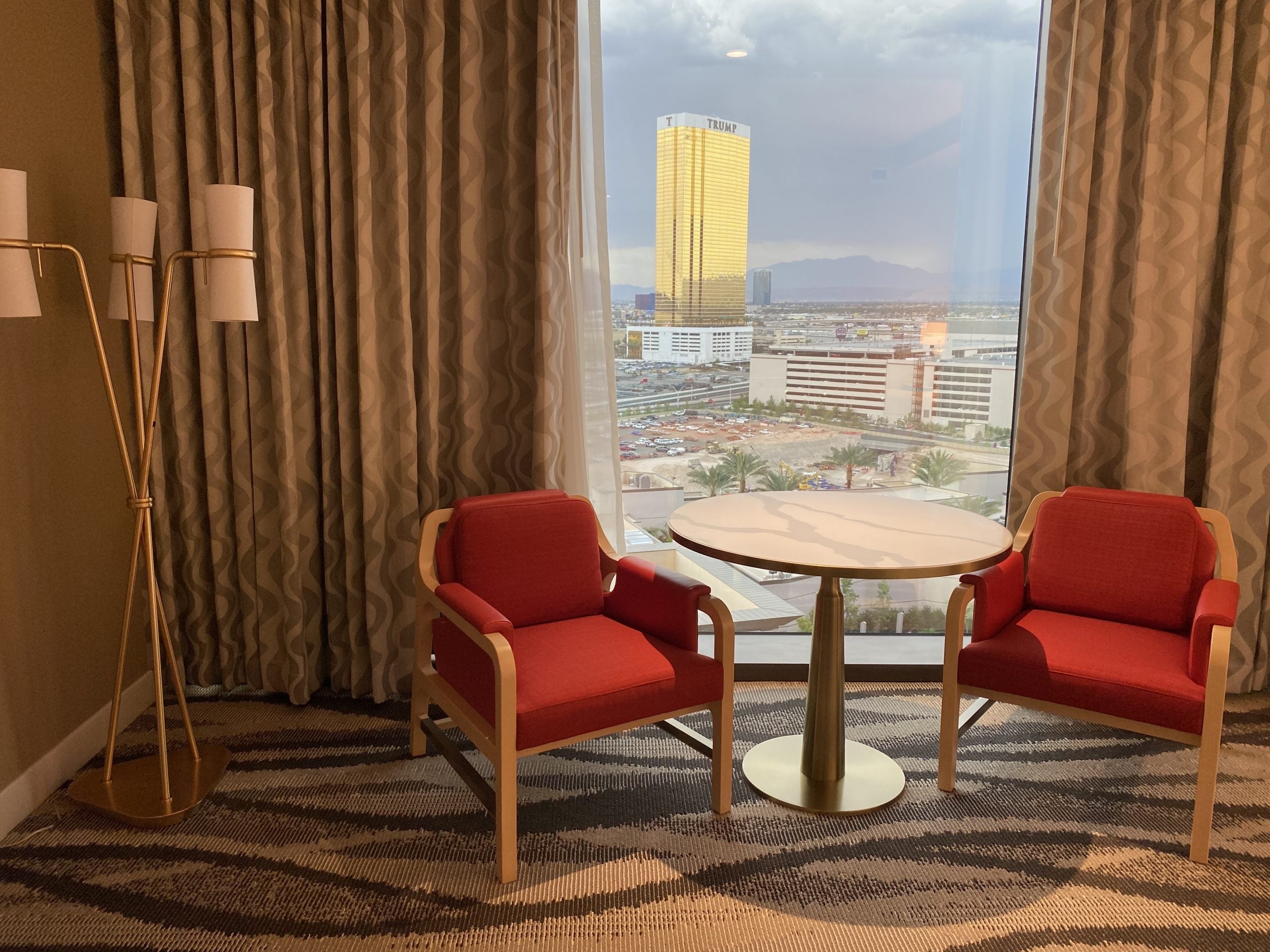 In total, Hull paid $209 plus tax and the $45 nightly resort for a night at the Conrad Las Vegas at Resort World and felt it was a fair deal given the excitement around Resorts World what other similar Vegas properties were going for that night. However, at a lower price point with similar offerings, it could make sense to opt for the Hilton next time — especially since the only marked difference is the room's decor and floor-to-ceiling windows.