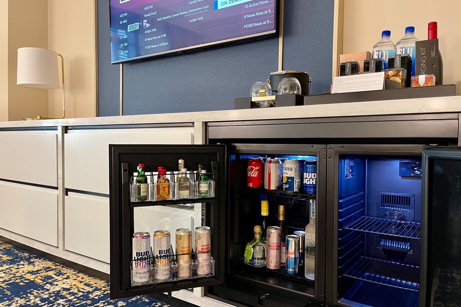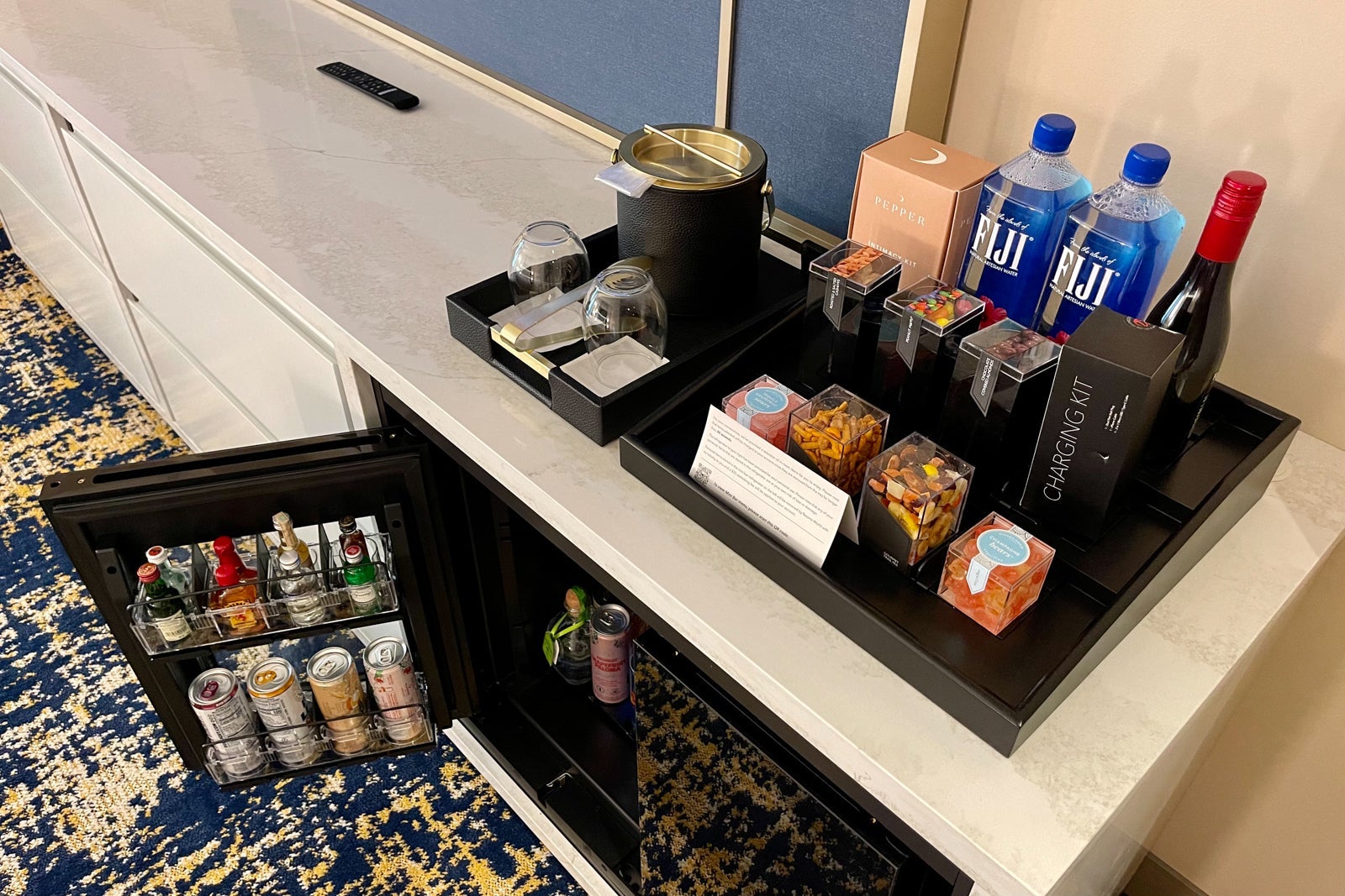 This is Vegas, after all, so the minibar was as well-stocked (and overpriced) as you'd expect. A 375-milliliter bottle of Belvedere vodka would set you back $68. A pack of cashews? $18.