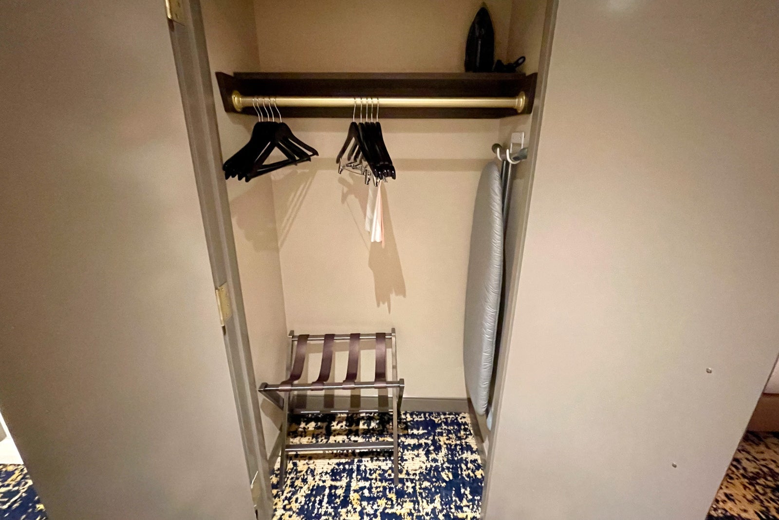 A small closet separated the bedroom from the bathroom. For a solo traveler, it was large enough, but you'll likely need to use the drawers in the dresser if you're traveling for more than a few days with more than one person.