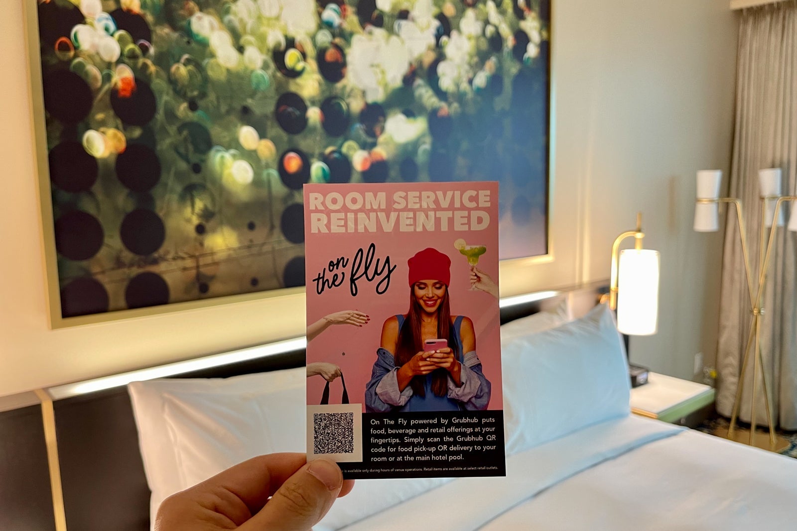 You can't order traditional room service at the hotel. Instead, Resorts World has partnered with GrubHub, a popular app-based food delivery service.