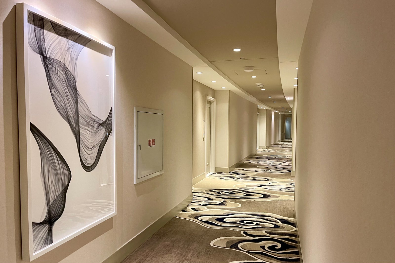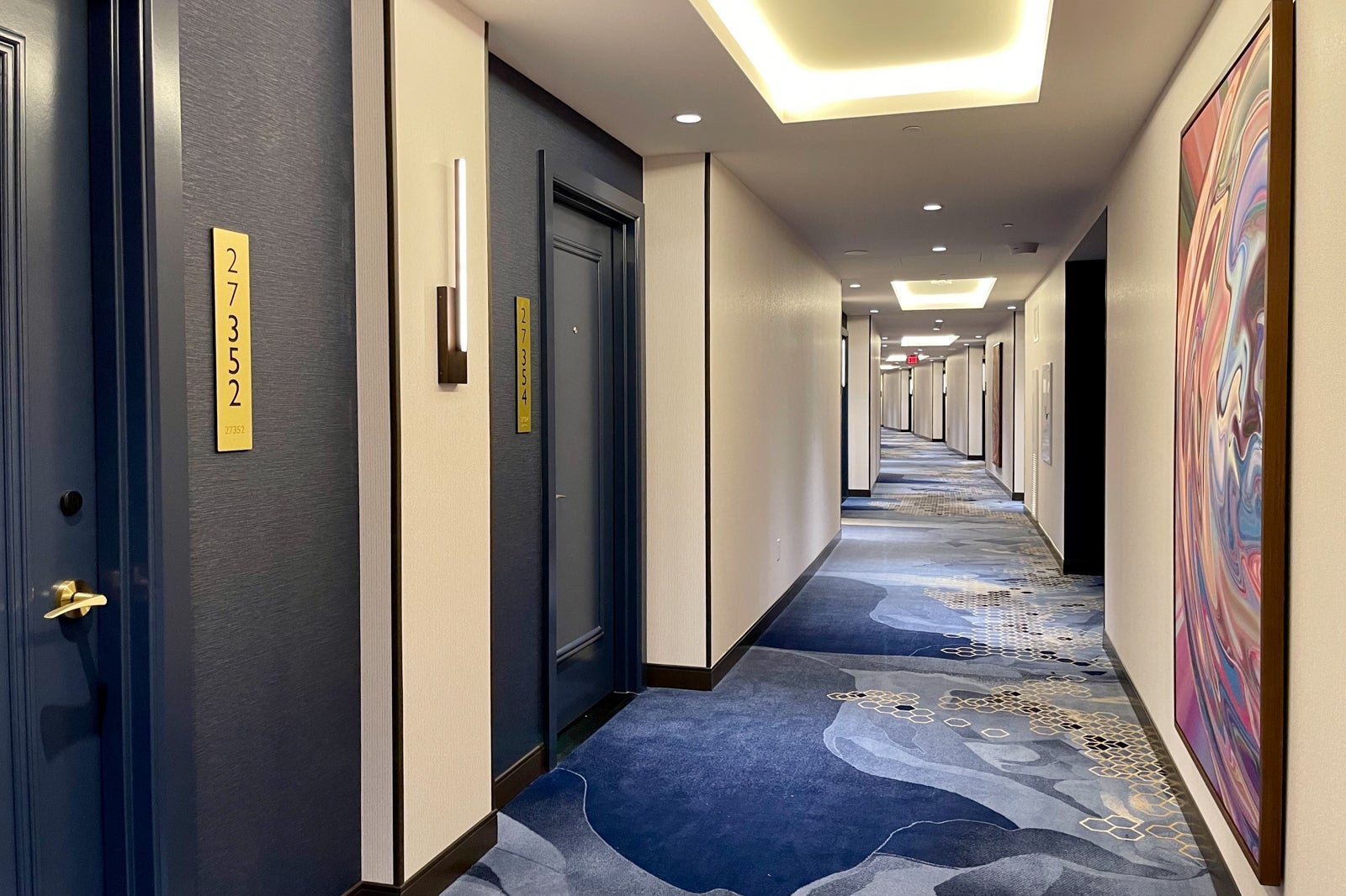 Here, in Vegas, the Hilton's hallways, with their blue accents, modern artwork and fancy carpetings, felt like they'd been picked out of a nearby Waldorf Astoria.
