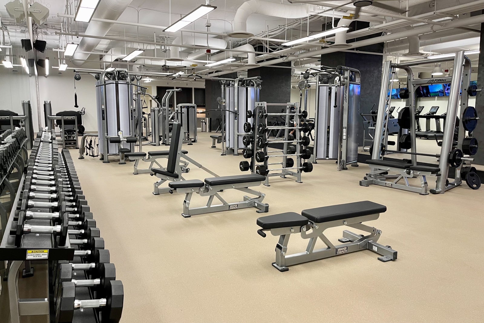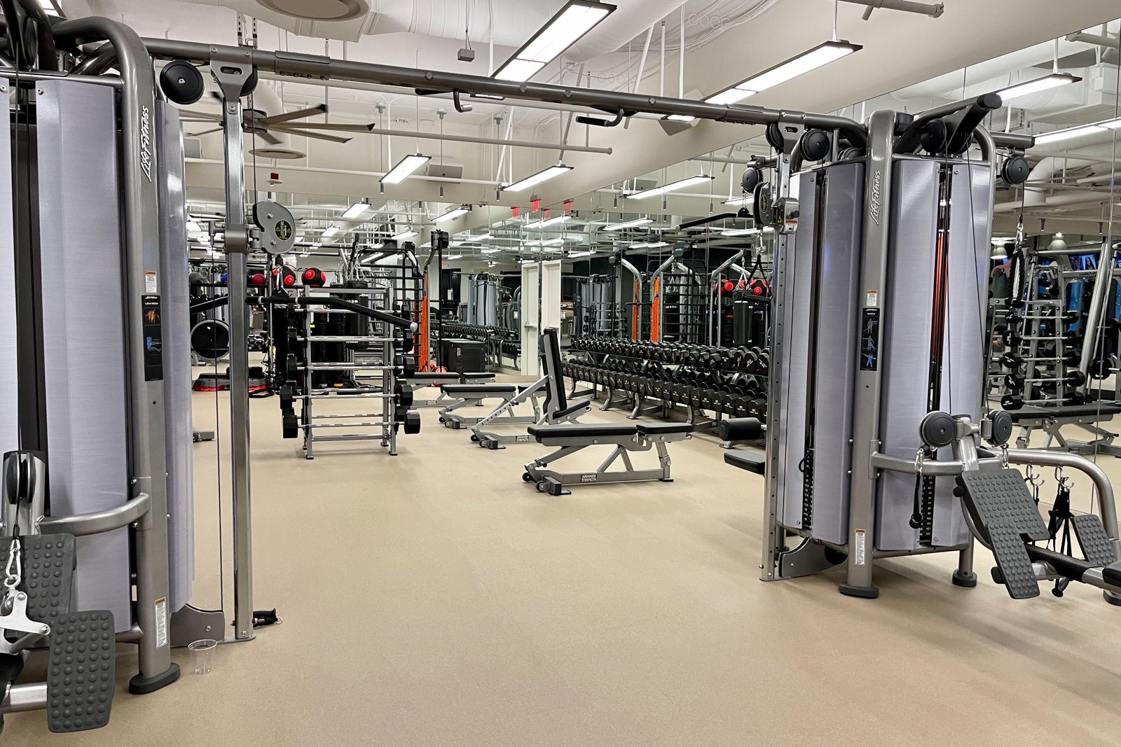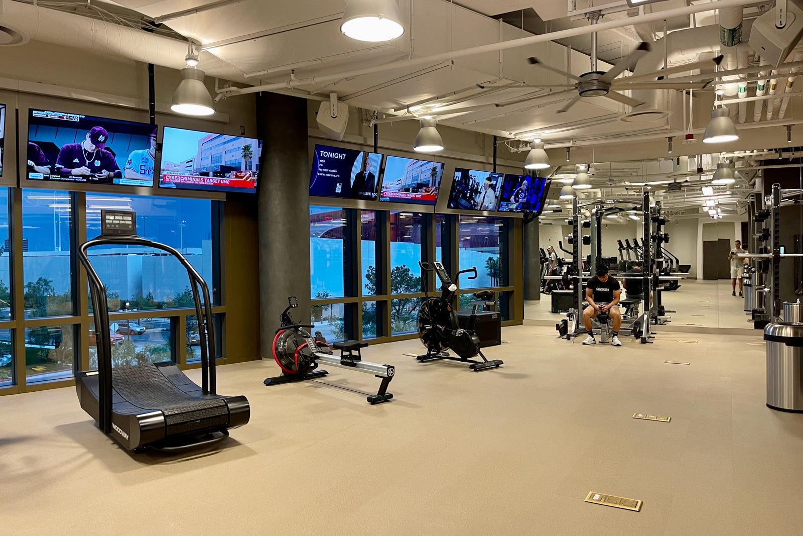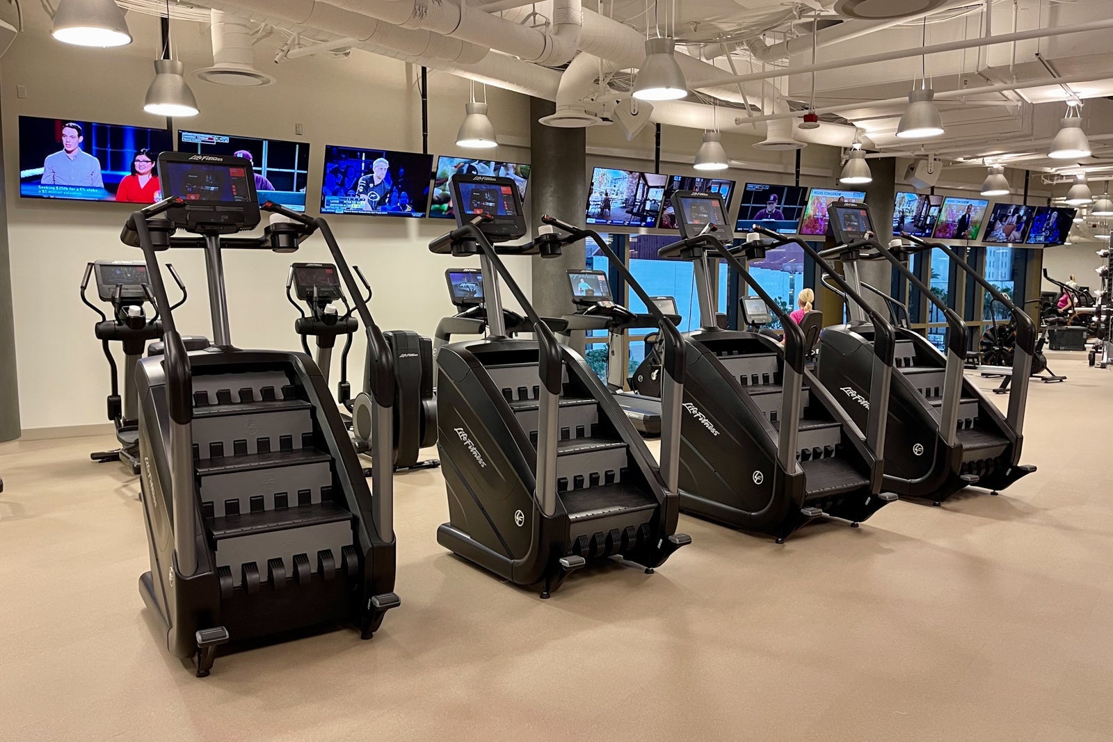 There's one gym shared across all three hotels located on the second floor, open from 5 a.m. to 9 p.m. It features five top-of-the-line Lifefitness treadmills, three ellipticals, four stair steppers and a handful of other cardio machines, including one of my favorites, a Woodway treadmill.