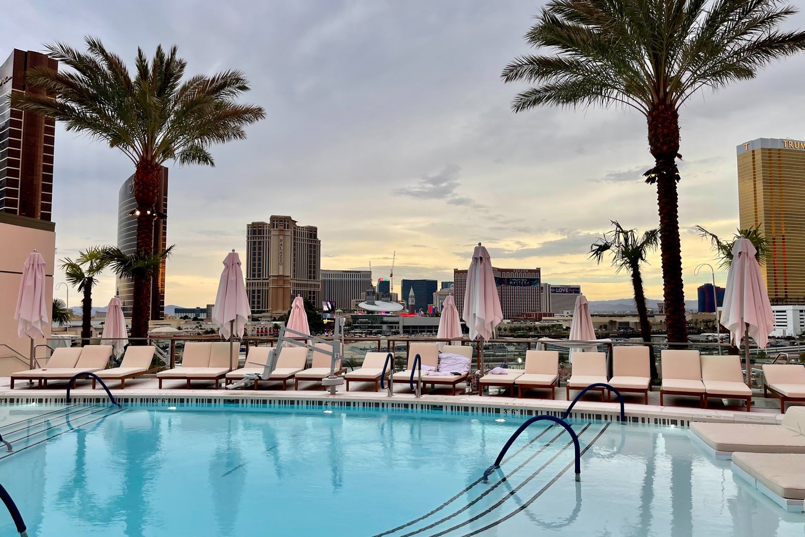 And, unlike the standard rooms in the Hilton, the Conrad had floor-to-ceiling windows that showcased the pools and a portion of the Las Vegas Strip — as long as you are willing to look past some construction.