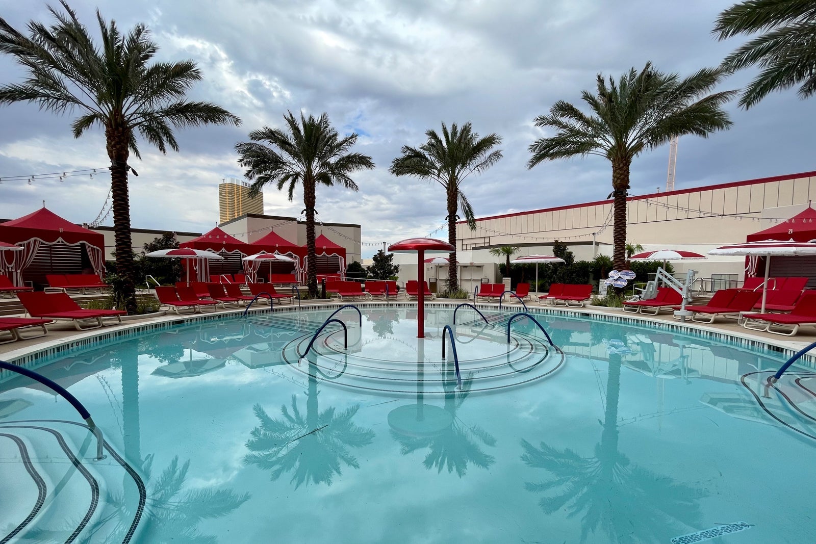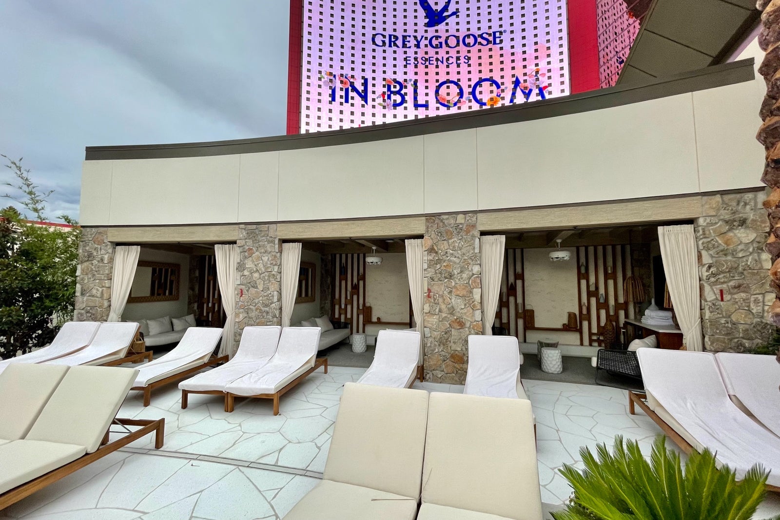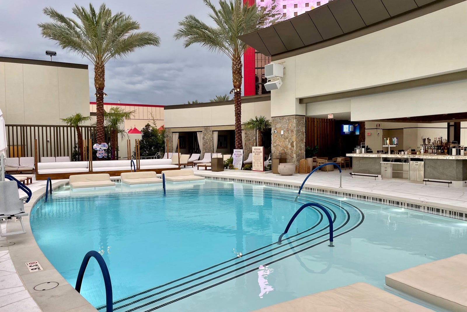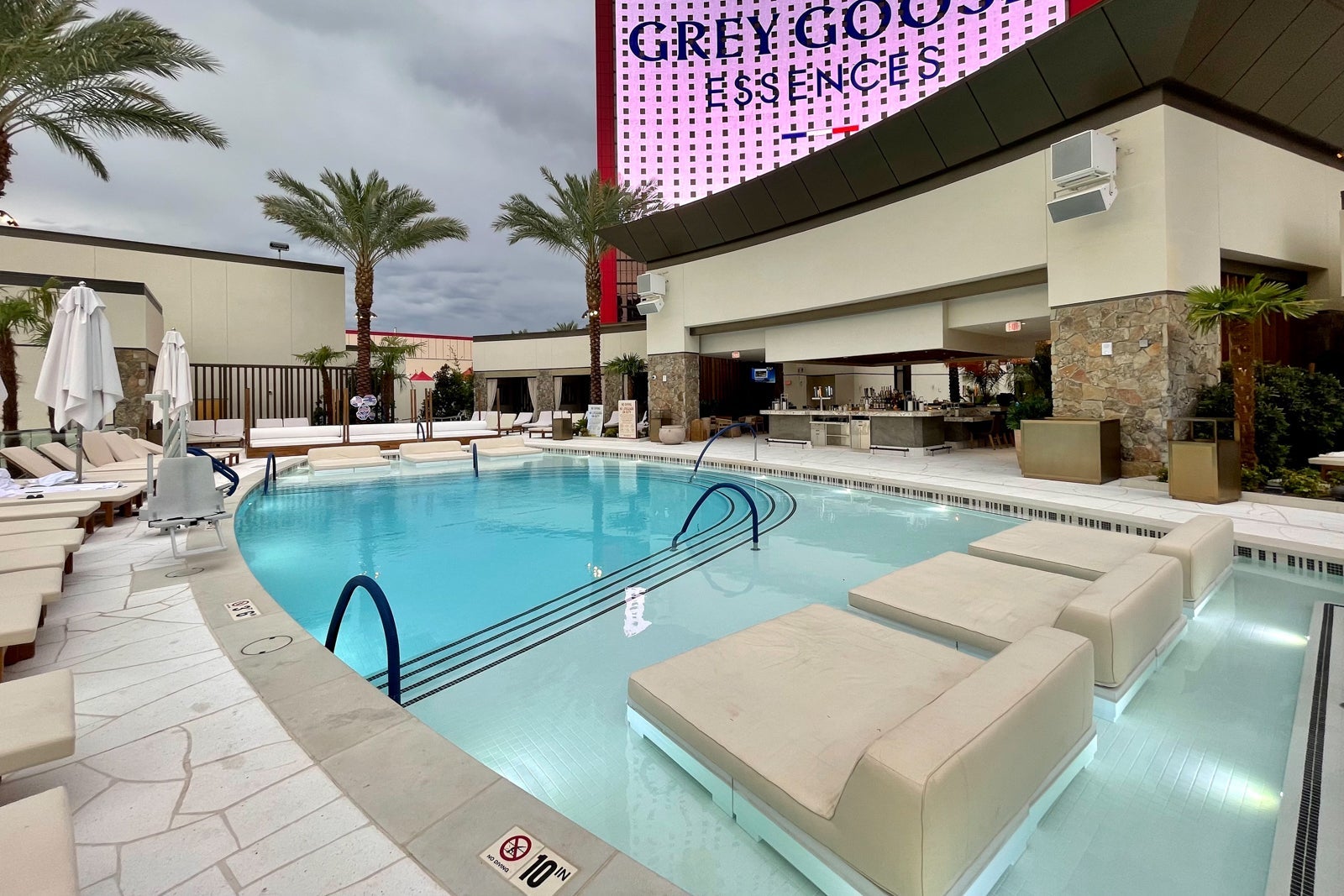 Then, there's the VIP pool area, which is the nicest of the bunch at Resorts World. Here you'll find a posh poolside bar, love seats, cabanas and chaise loungers, which start at $100, half of which will be returned to you in the form of a food and beverage credit.