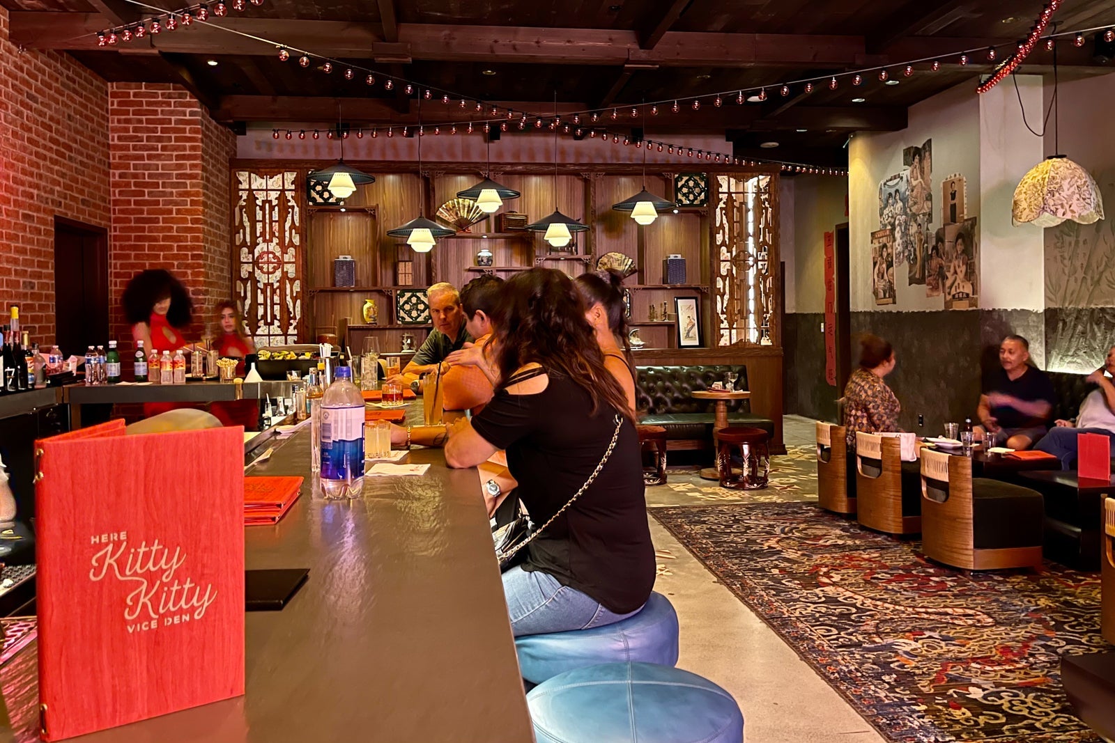 Perhaps the coolest place to grab a drink at Resorts World is Here Kitty Kitty Vice Den, a speakeasy tucked away behind an Asian-inspired convenience store.