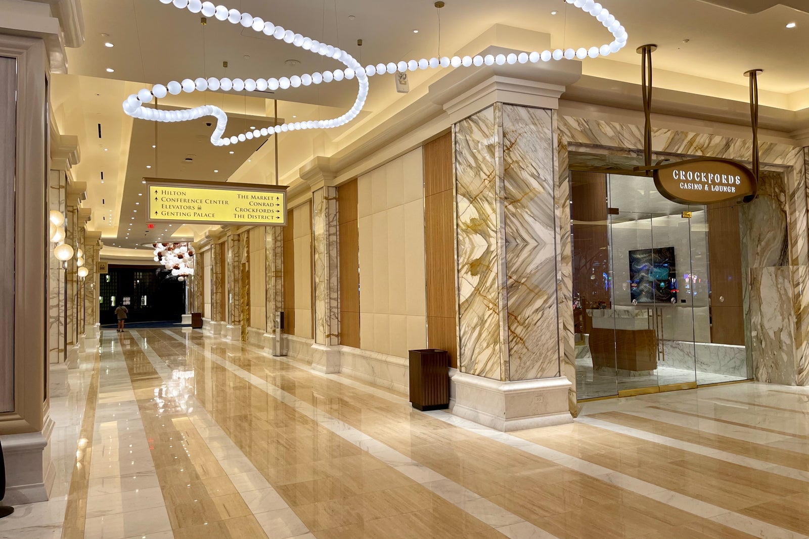 That didn't stop us from peeking into the Crockfolds lobby. Of all three hotels under the Resorts World roof, this is clearly the nicest. The design felt the most tasteful and luxurious of the trio. (Crockfords is named after a London casino, also owned by the Genting Group.)