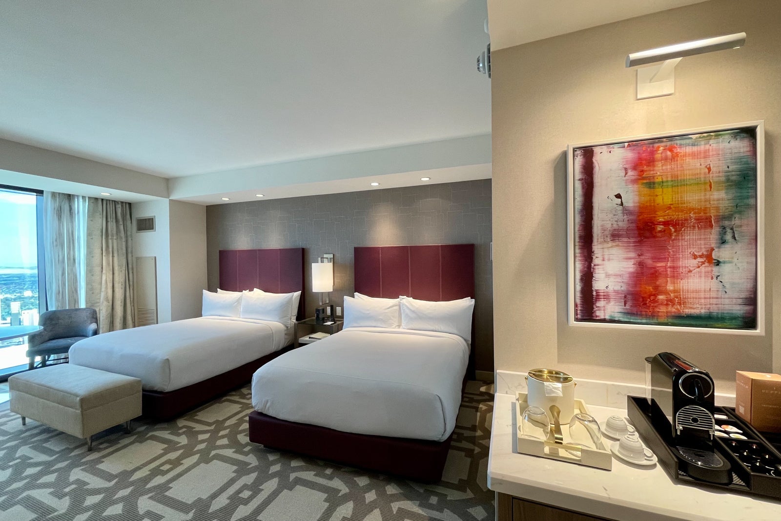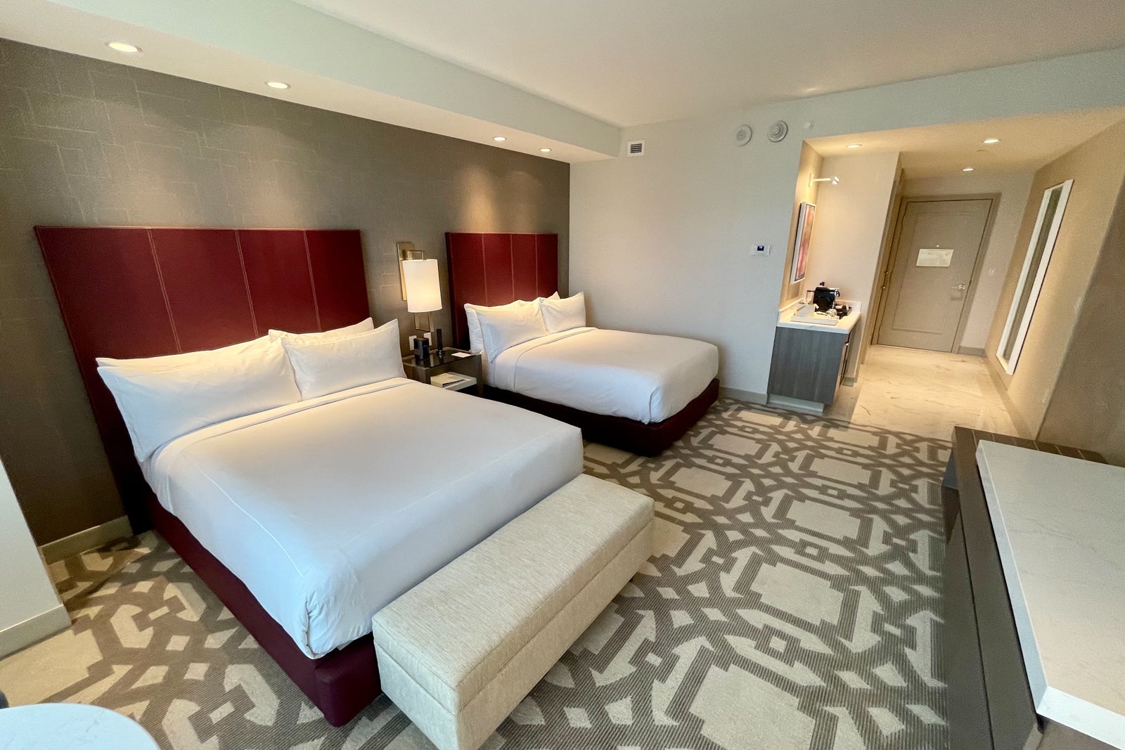 The first, a standard, two queen-bed room, was nicely appointed but appeared no larger than the standard rooms at the Hilton or Conrad.