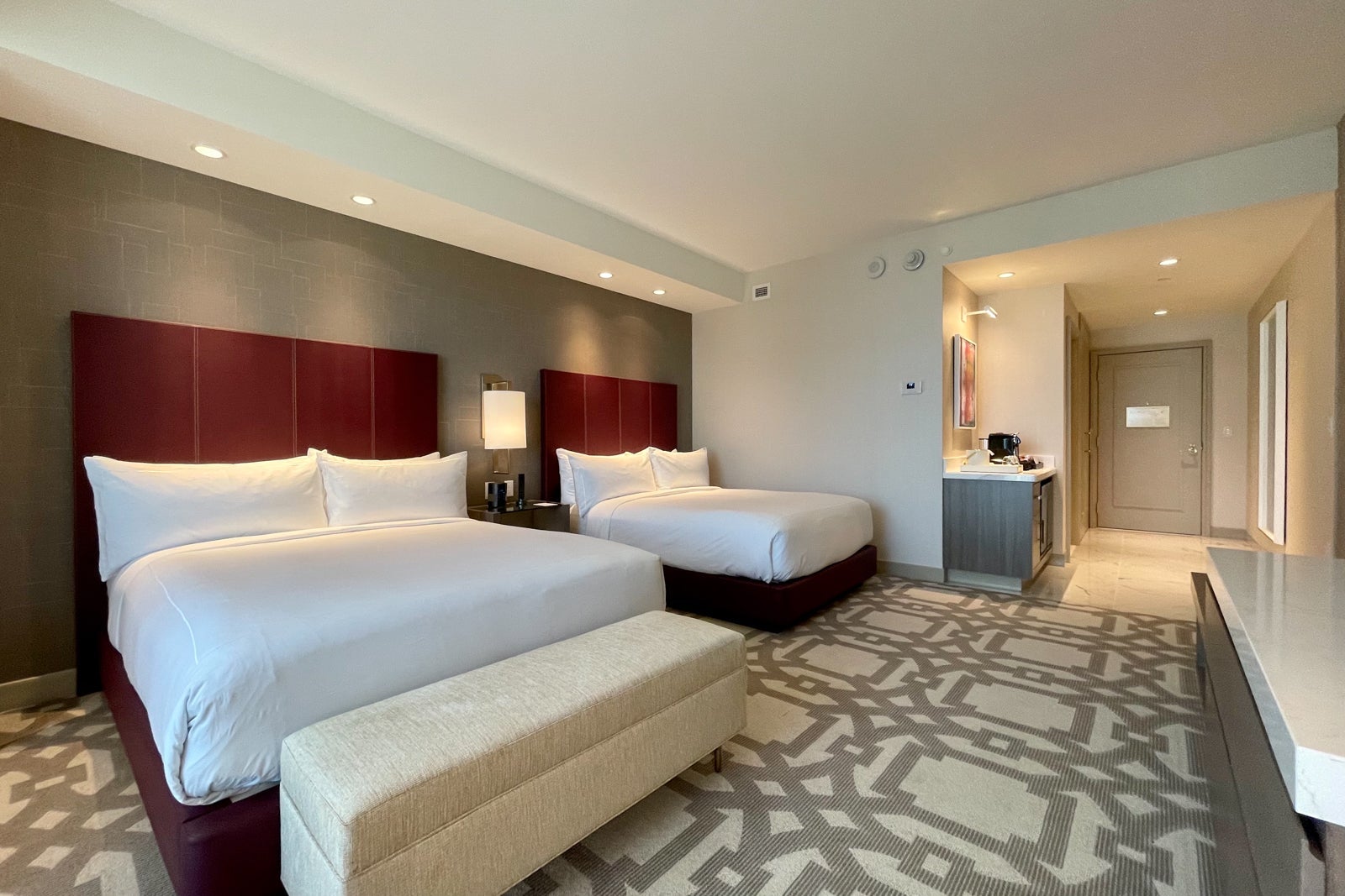 But check all your preconceived notions at the door — the Hilton at Resorts Worlds outperforms its name and is on equal footing with the more upscale and pricier Conrad-branded hotel next door.
