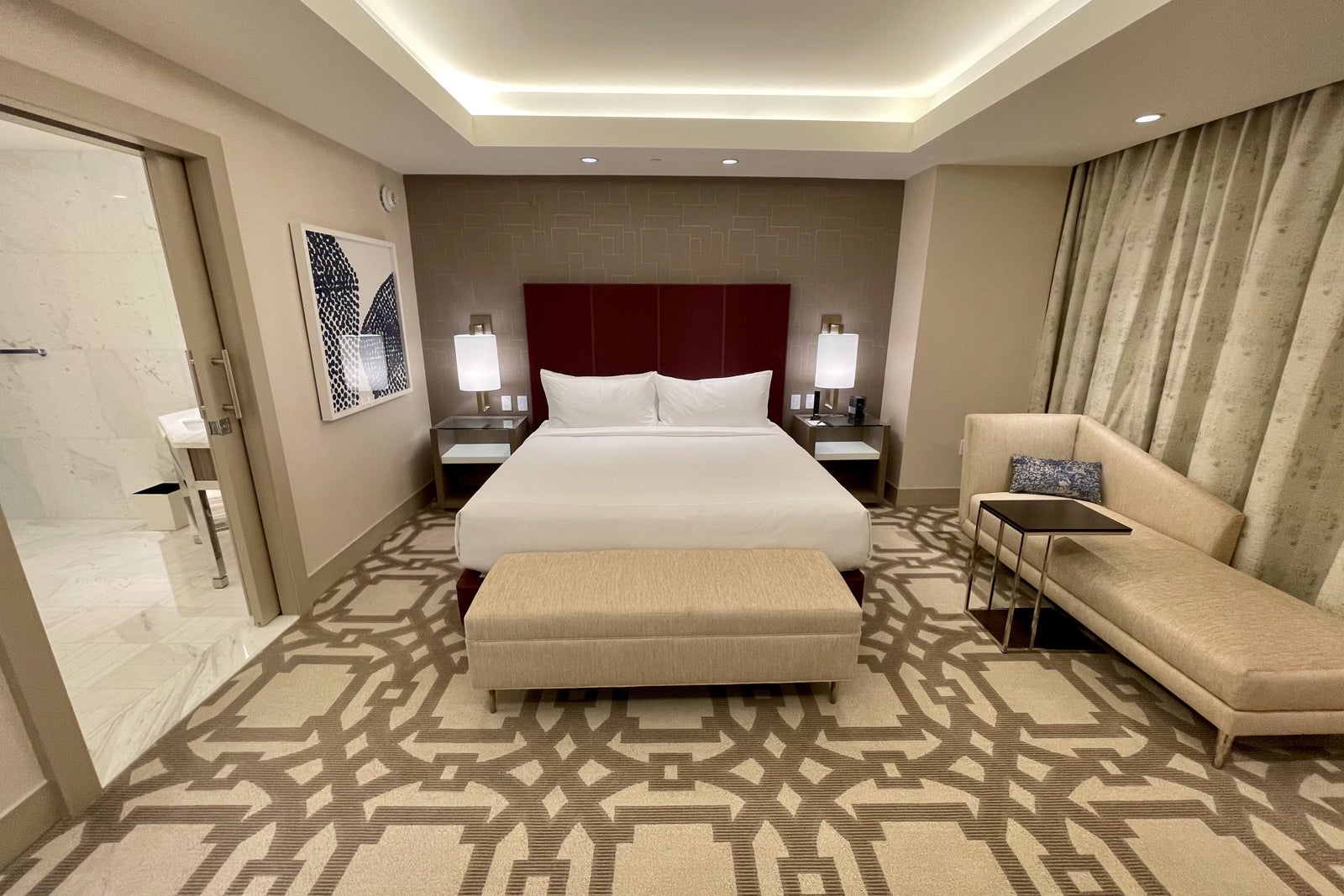 I was equally impressed by the standard king-bed room itself. Coming in at 400 square feet, it isn't the largest entry-level room in Vegas, but the design, relative to other Hiltons worldwide, was downright luxurious.