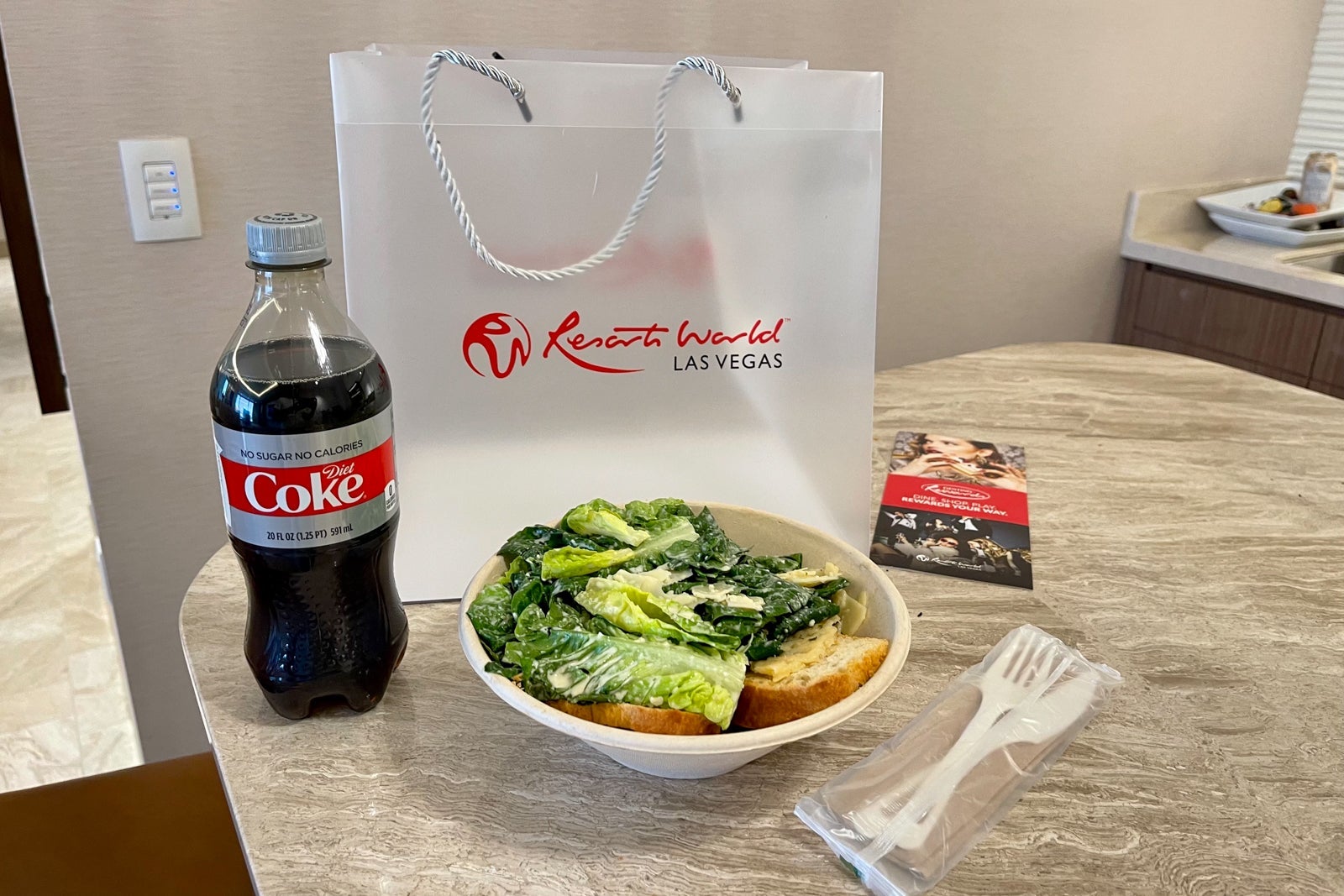 We ordered a $17 Ceasar salad and a $5 Diet Coke. The hotel added $8.50 delivery free, plus our 20% "driver tip." While not cheap, the fees are in line with what other Vegas hotels charge for room service. It's just too bad that the free delivery perk of my GrubHub+ membership (which I received courtesy of the Chase Sapphire Reserve) didn't apply to this order.