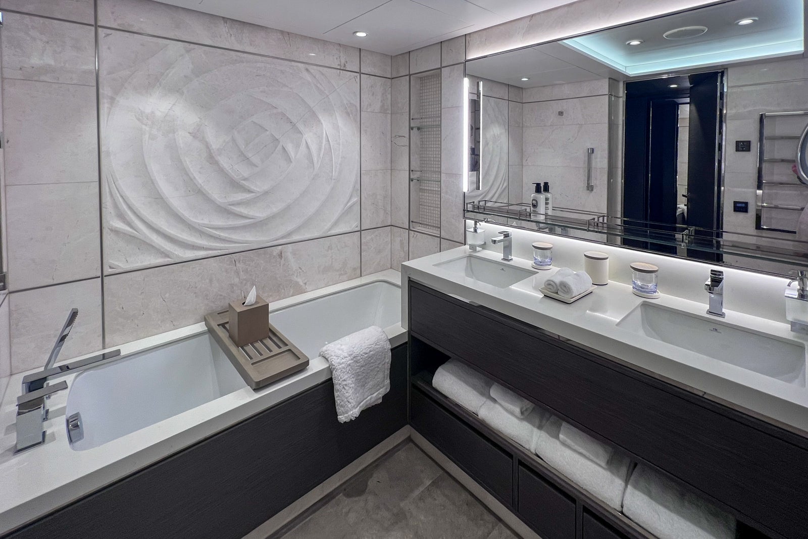 Indeed, the three TPG staffers on the tour all agreed that this was a ship that Ritz-Carlton customers would enjoy. It had the luxurious finishings and sumptuous furniture (including leather sofas and marble-topped tables in lounges) that one expects from a Ritz-Carlton property, the smart-looking staffer waiting for your arrival at the door with a cold towel, the masseuses on call at a serene in-house spa to rub away your worries.