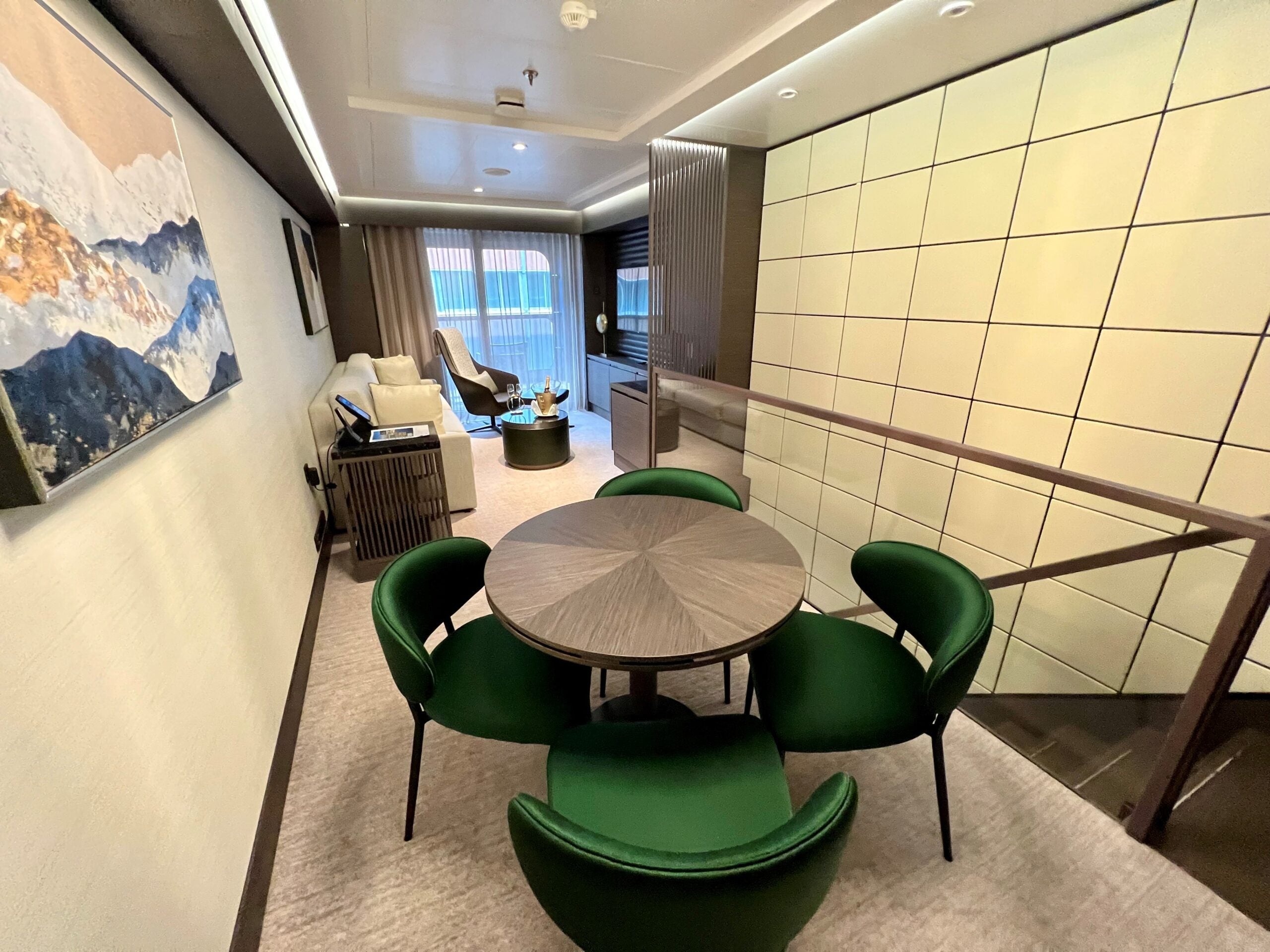 I say rooms, but a hallmark of Evrima is that it is an all-suite ship. Every room is a suite, and every suite has a balcony, to boot. That's not typical for cruise vessels in general, although it's common for the latest generation of luxury ships.