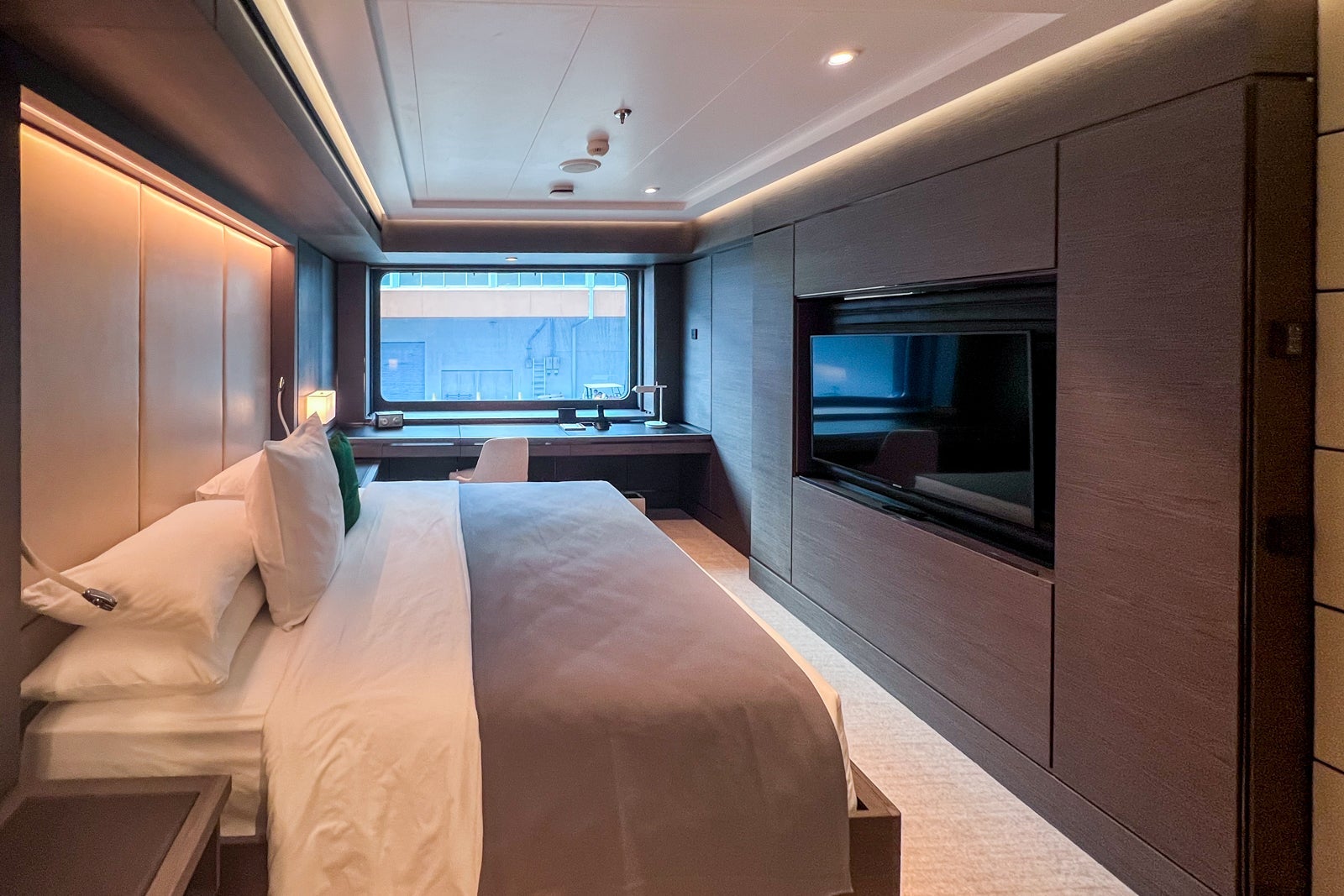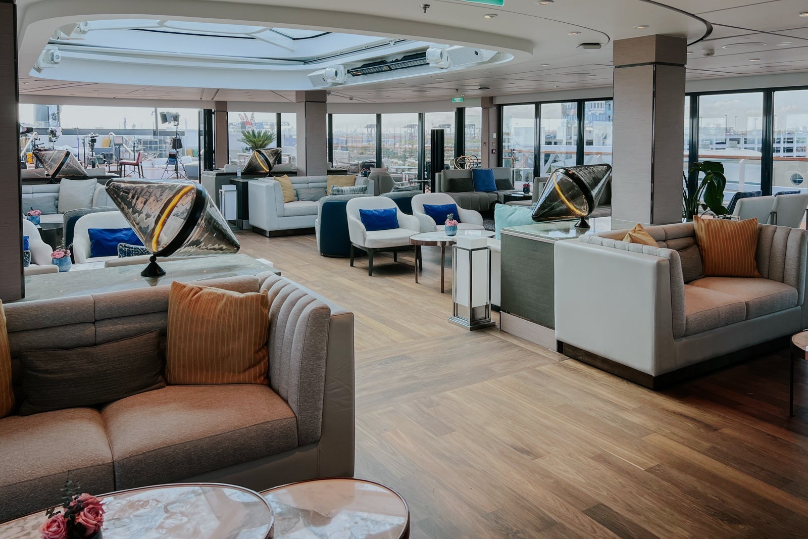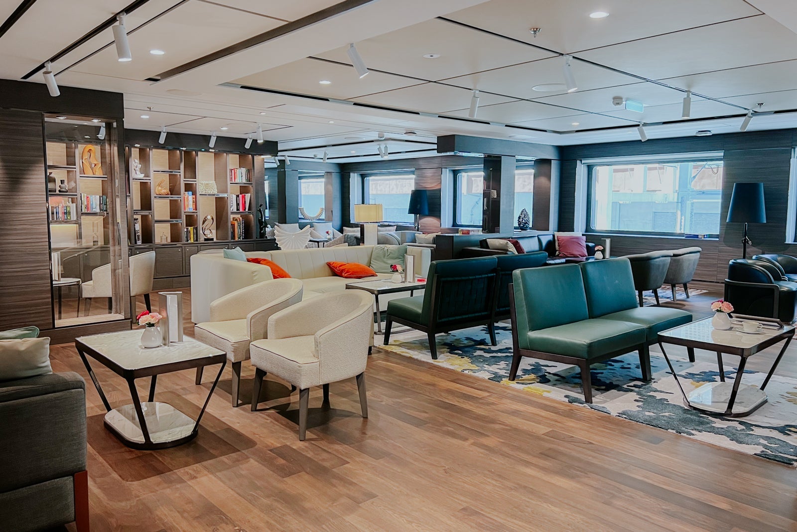 I felt relaxed walking aboard Evrima. It felt less like my preconceived notion of a sprawling cruise ship with a massive reception area. Instead, it was more like stepping through a chic side entrance of a glamorous hotel or resort.