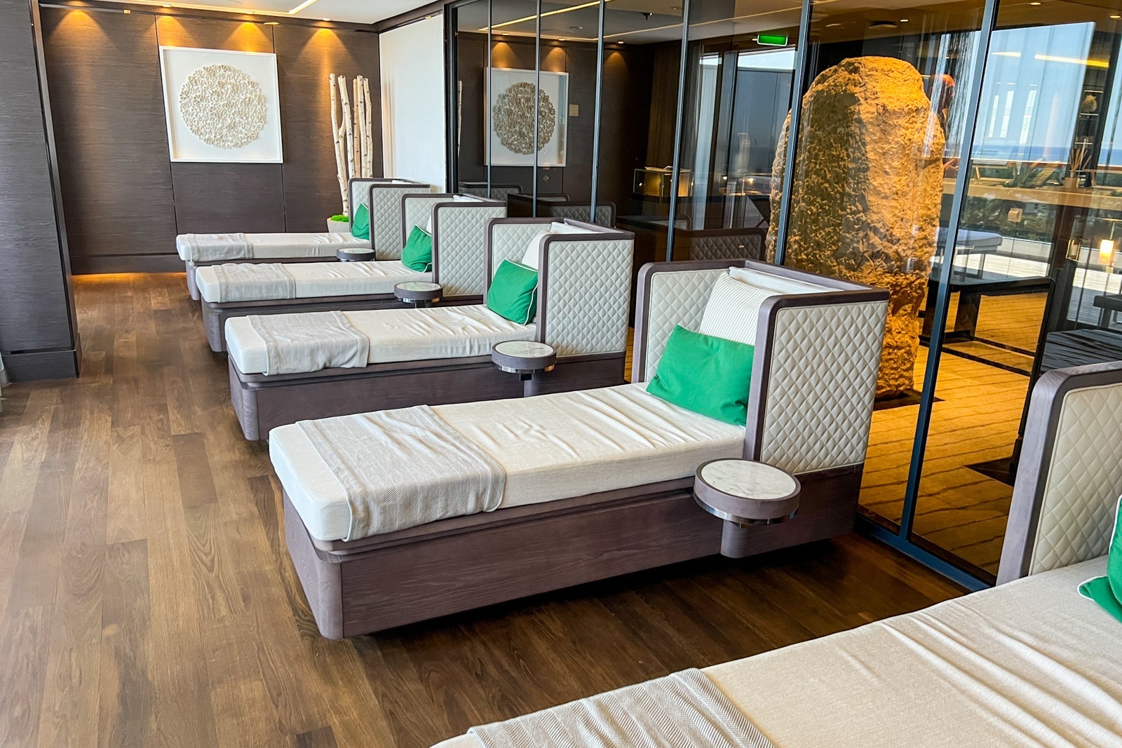 This was the vibe across much of Evrima. The ship was full of bookcase-lined cocktail lounges and entertainment spaces, as well as a cozy humidor for enjoying a hand-rolled cigar, cognac or a bottle of wine that might rival the cost of a suite. The Ritz-Carlton Spa on board was similarly outfitted; it offered spaces surprisingly roomy for a cruise ship but intimate enough for a relaxing day of self-care.