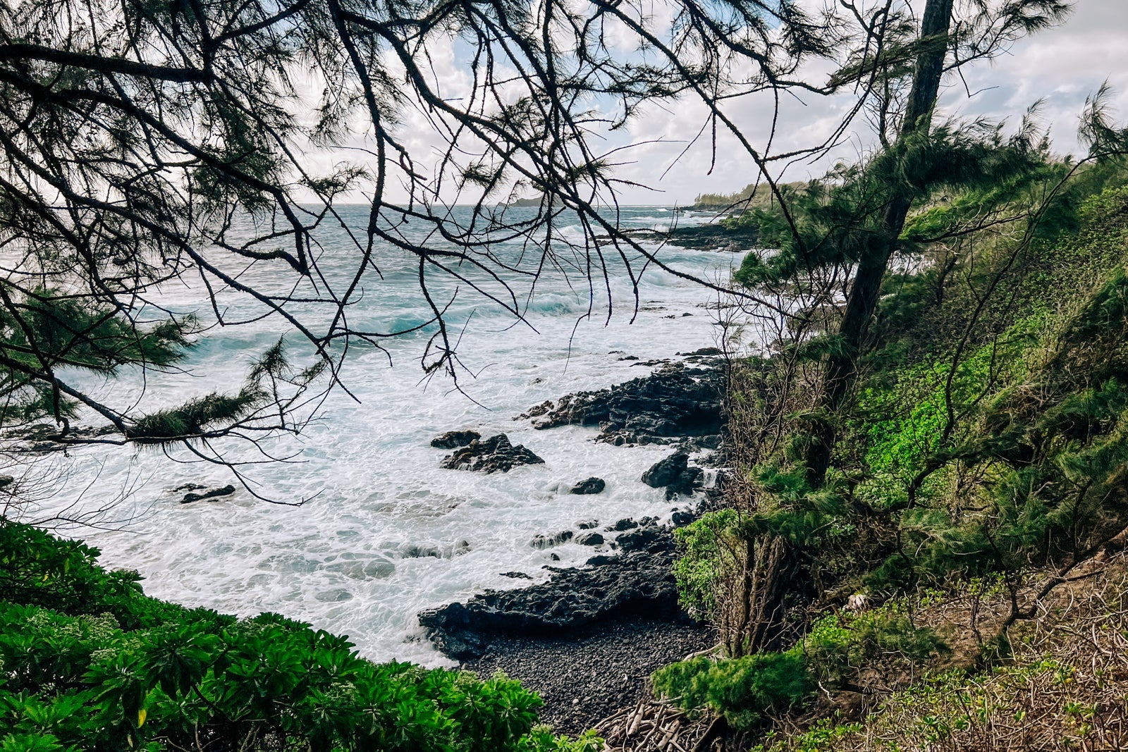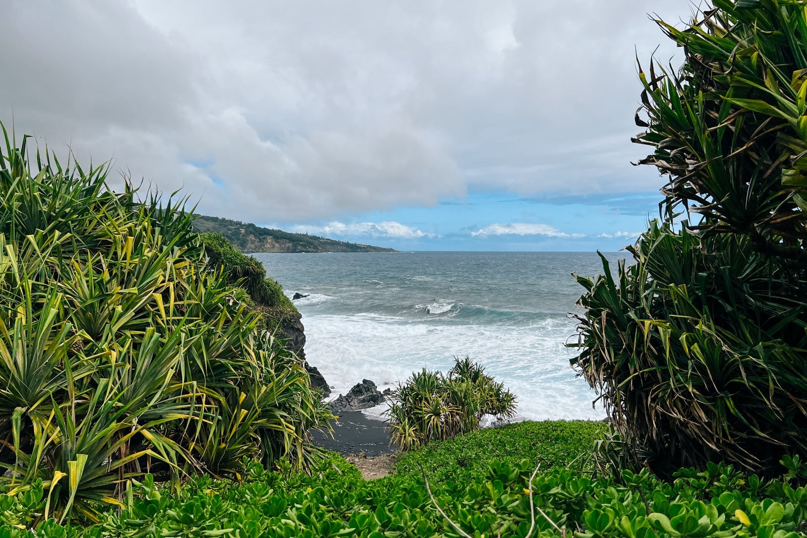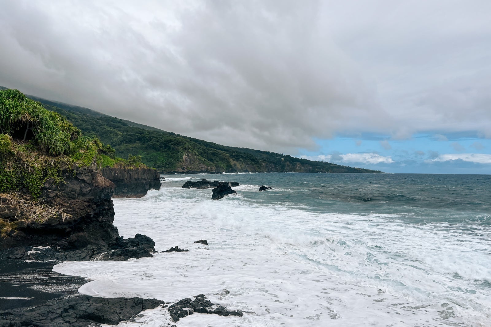 My brother and I spent some time at Waianapanapa State Park, which has epic waterfalls and spectacular ocean views, along with several hiking trails. I'd recommend making entry reservations, though the day we arrived, we lucked out and didn't end up needing them. It cost $30 for me and my brother to park our Jeep and enter.