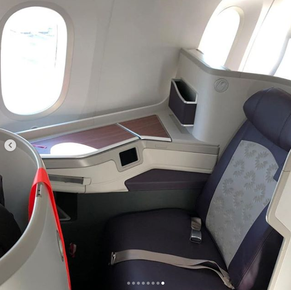 Most importantly, the airline appears to have given a huge upgrade to its current business class and will install reverse herringbone B/E Aerospace Diamond seats on the -9s, similar to those on American's 777-200 and Air Canada's 787-9. This means the -9 will have a 1-2-1 layout, and all seats will have direct aisle access. It's -8 does have lie-flat seats, but they're arranged in a 2-2-2 layout — so some passengers would have to climb over their seatmate if they wanted to move about the cabin. The airline revealed renderings of the aircraft business cabin on Instagram: