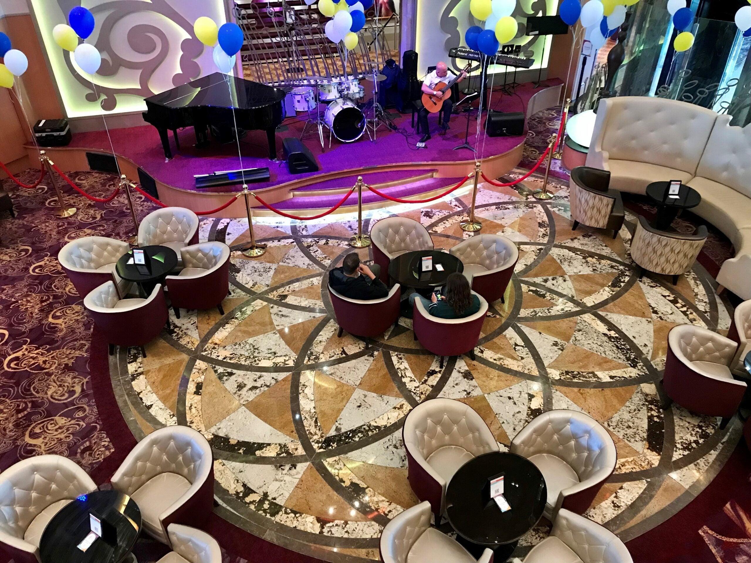 Last night, as I was dining at the ship's Italian eatery, Giovanni's Table, I noticed at one point that the entire staff was attending just to my table and one other table that was occupied. Afterward, I sat down with another cruise writer in the ship's signature Schooner Bar for a drink and, for a time, we had the entire place (and the live piano music that it offered) to ourselves.