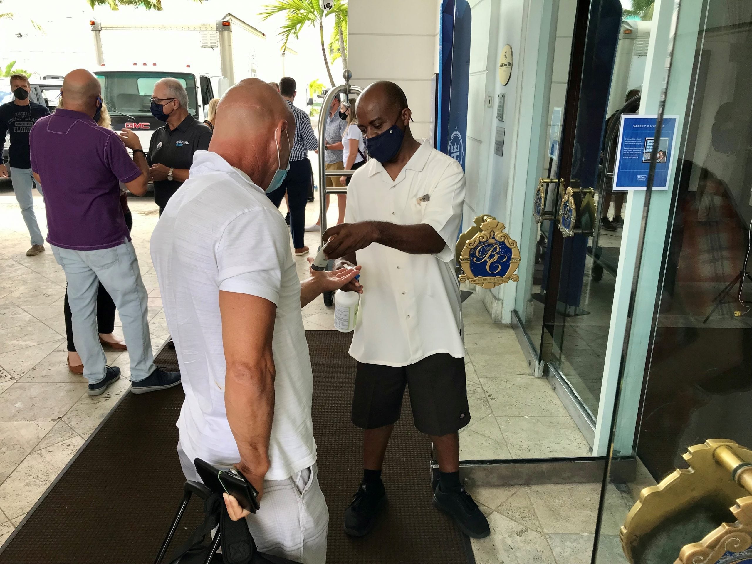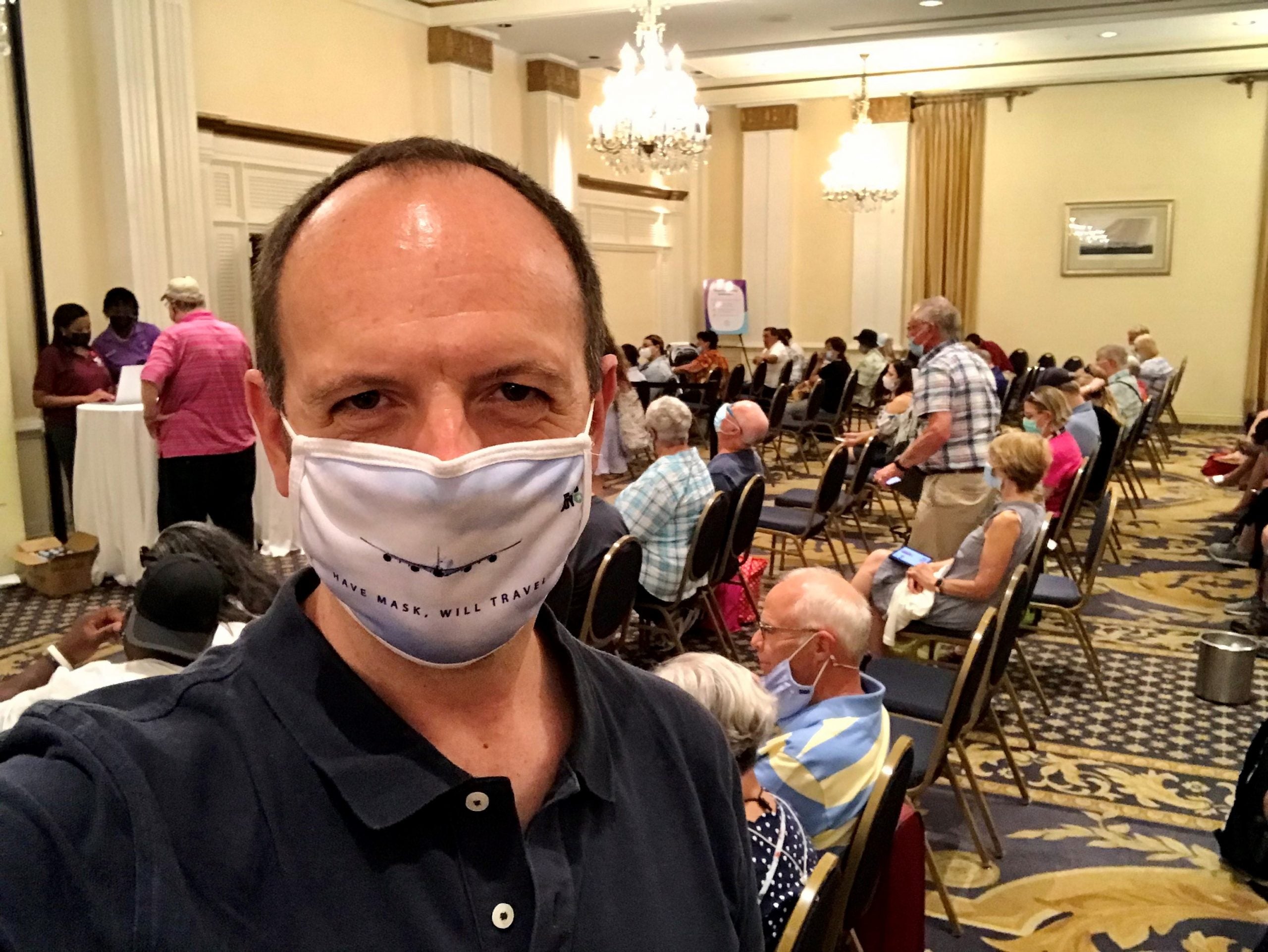 Both the COVID-19 testing and the waiting took place in conference rooms in the hotel. Per Bahamian rules, we all were required to wear masks through the entire process.