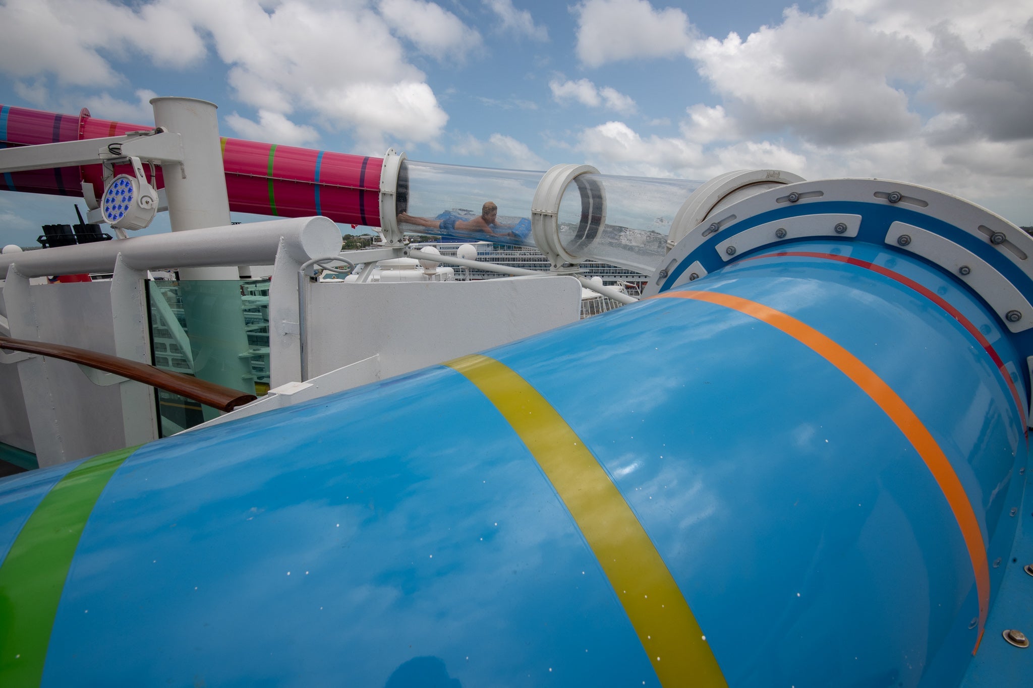 Despite its unusually long length (it stretches more than 800 feet) The Blaster isn't a scream-inducing thrill ride. It didn't strike fear into me like the new Daredevil's Peak waterslide at Royal Caribbean's Perfect Day at CocoCay, which plunges from a height of 135 feet and is the biggest waterslide drop in North America. (I'm still getting over that one, which I tried for the first time on this very same trip.)