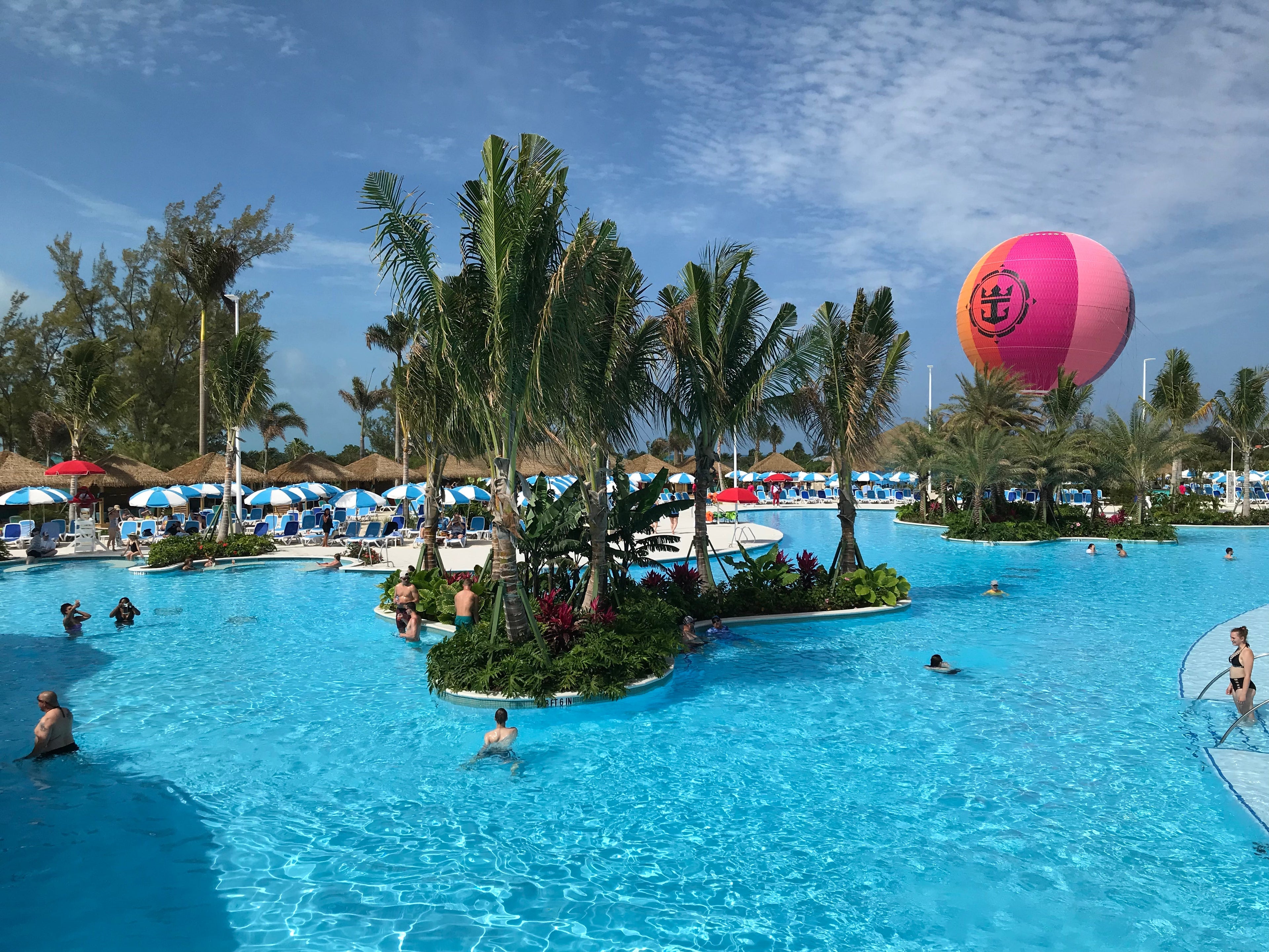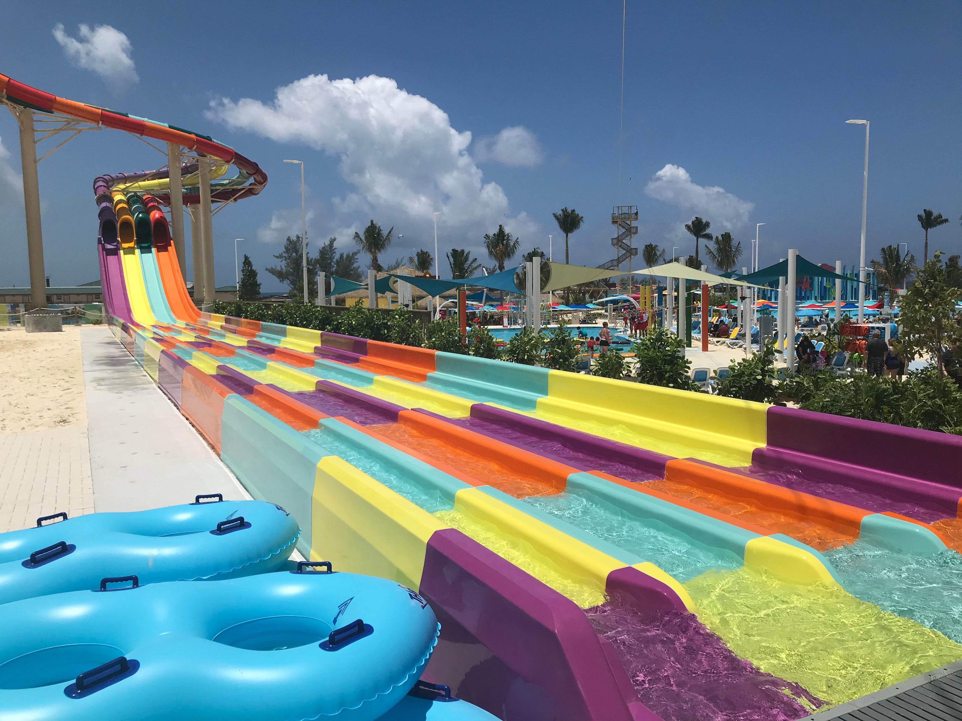 What they came up with, at a staggering cost of $250 million, was a far cry from the sleepy beach retreats typical among cruise line private islands. As I wrote about last week in my initial review of Perfect Day, the island now is at once a beach resort, an amusement zone and a luxury hideaway. Most notably, it's now home to a full-blown waterpark with 13 water slides (more than any other waterpark in the Bahamas or Caribbean); the region's biggest wave pool; and the region's largest freshwater pool – the latter so big it can supposedly hold up to 1,750 people at a time.