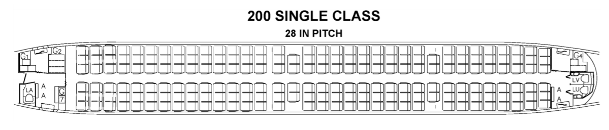 As TPG's JT Genter reported, the aircraft could carry up to 200 passengers (hence the 200 name). Here's a look at the seat map: