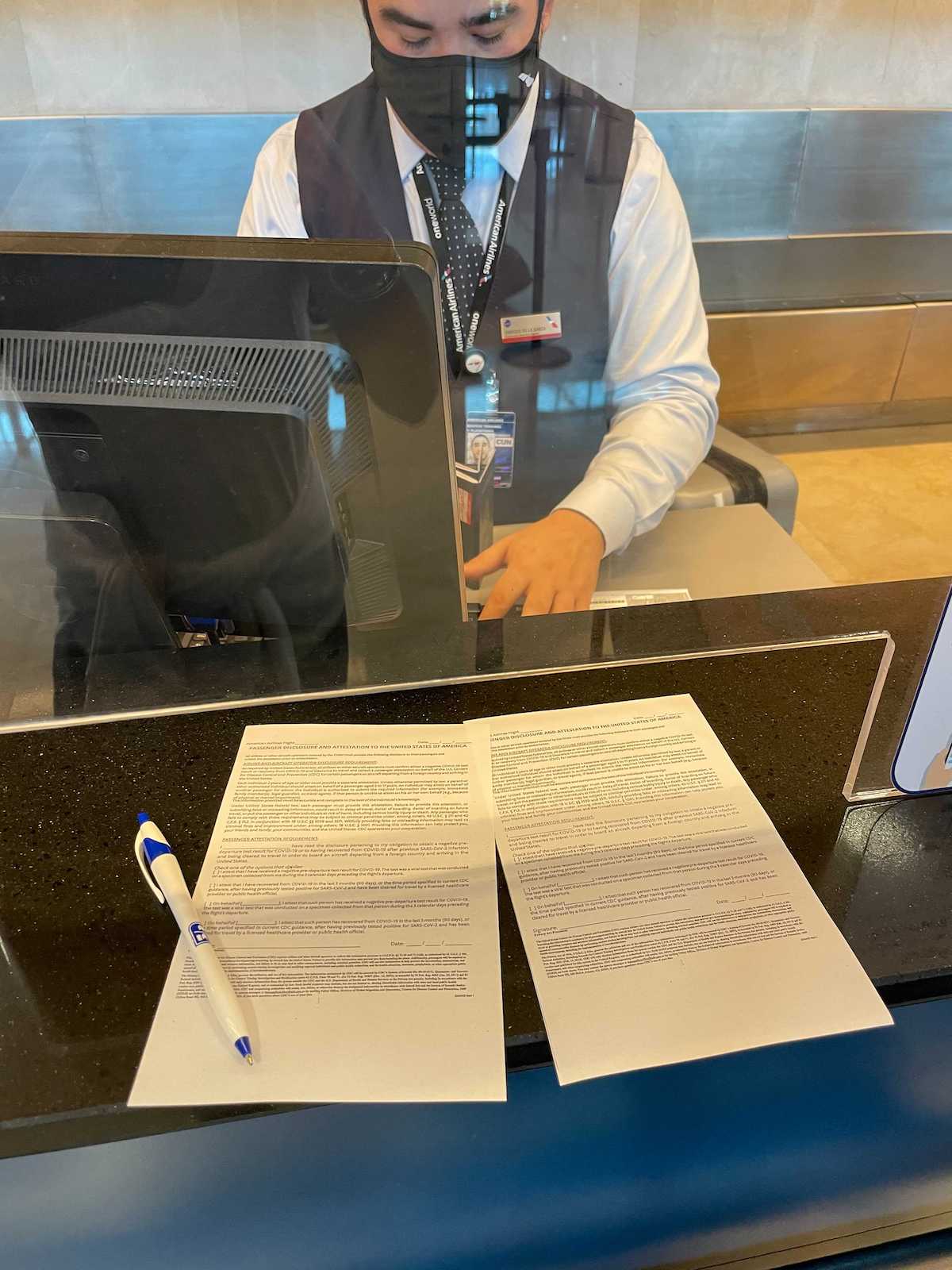 From there, I was asked to fill out a brief paper form acknowledging that "I received a negative pre-departure test result for COVID-19." Overall, filling out the paper form and showing the attendant my negative test results on my phone was a very simple process.