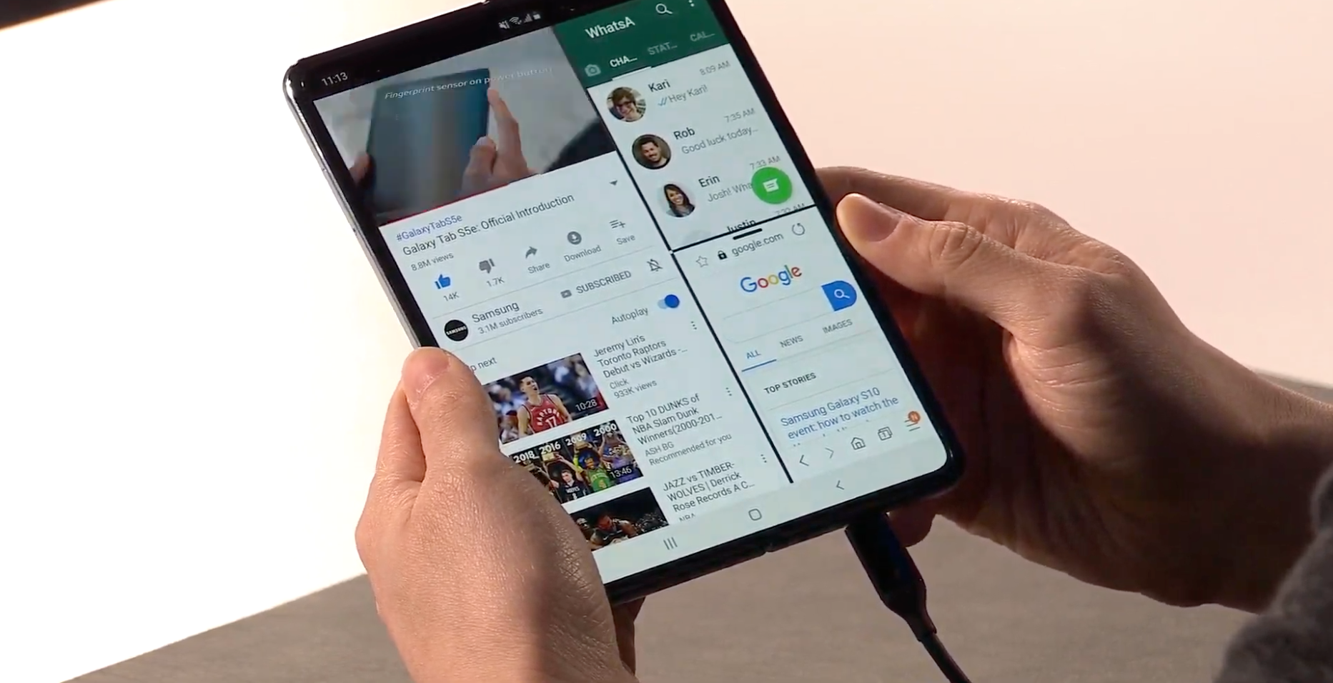 The Fold combines a 4.6-inch smartphone with a 7.3-inch tablet — simple unfold the device to jump from phone to slate mode. In addition to a seamless display design, the device sports special software to enable smooth transitions. With Google Maps, for example, if you begin your search with the device held vertically, you'll get a far wider view the moment you open it up.