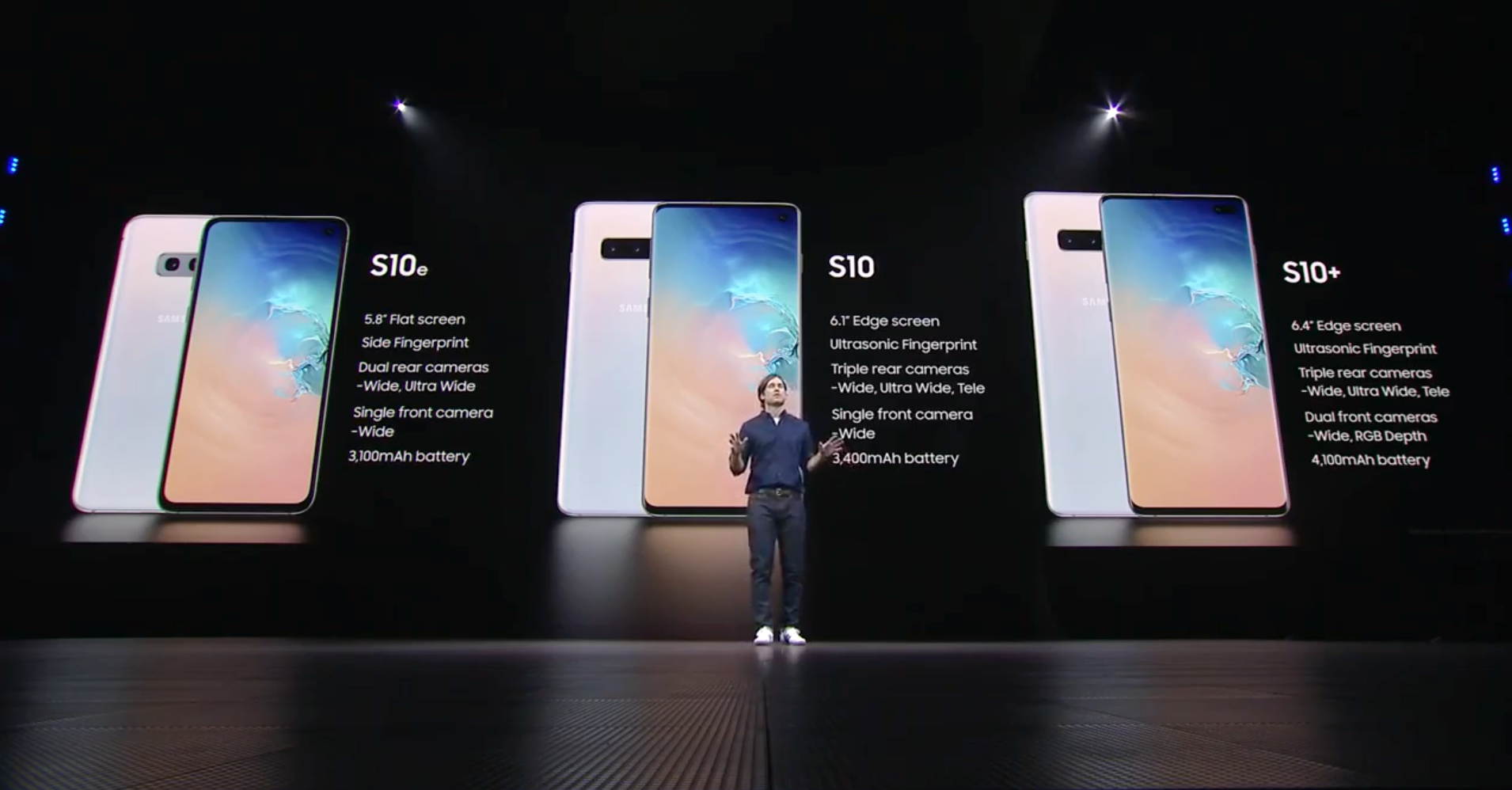 The S10E offers that 16-megapixel ultra-wide shooter, in addition to a more traditional 12-megapixel wide-angle cam. The S10 and S10 Plus include both of those cameras as well, in addition to a 2x telephoto camera, also with a 12-megapixel resolution.