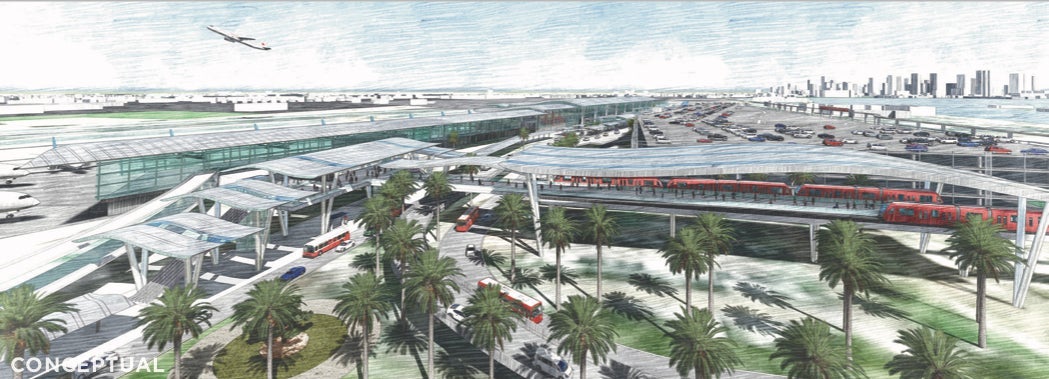 The newly approved proposal includes dedicated lanes for vehicles heading the the airport, as well as a space between Terminals 1 and 2 set aside for a future transit station at the airport.