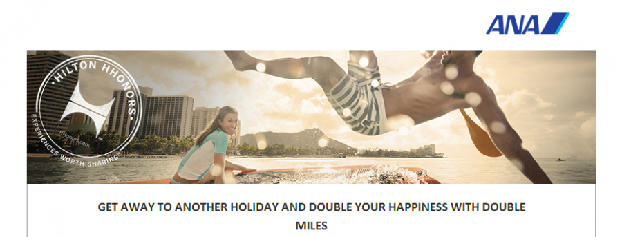 Double Miles For ANA Mileage Club Member Stays At Hilton: If you are a member of both ANA Mileage Club and Hilton HHonors, you can earn double miles for Hilton stays between May 1-July 31, 2014. One ANA Mileage Club member who earns the most base miles during the promotion period could also win a trip for two to Hawaii with a four night stay at Hilton Hawaiian Village Waikiki Beach Resort and 300,000 ANA Sky Coins which can be used to redeem for return tickets for two to Hawaii. In order to earn the double miles, you must be a Hilton HHonors member, a member of ANA Mileage Club Program, register for this promotion and select All Nippon Airways as your preferred double dip partner (directions on how to select your double dip partner here).