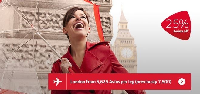 Through December 31, 2015, you can get 25% off select Iberia award flights when you redeem with Avios. Most of the available flights are to or from Madrid, with additional destinations in Europe, Central America and South America.