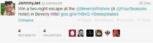 Win a Two Night Stay at the Beverly Wilshire: The Four Season Beverly Wilshire hotel is giving away a two-night package valued at $2,000 for two people, tweets @JohnnyJet. The package includes: two nights accommodation in a Signature Room, dinner for two at the BLVD Restaurant, and two one-hour custom massages at the hotel spa. Enter by signing up for the Johnny Jet newsletter, and follow him on Twitter and Facebook for additional entries. You can use the form to follow the Beverly Wilshire on Twitter and like their Facebook page for more entries—and for one last entry, you can agree to send out a preset tweet noting that you’ve entered. You have until midnight on December 31, 2013 to enter.