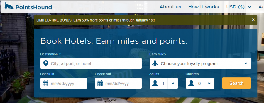 PointsHound Is Offering A 50% Bonus On All Miles Earned For Bookings Made By January 1st: Get a 50% bonus on all miles earned when you book before January 1, 2014. The additional miles are included in the amount shown when you search for hotels. Simply create an account, search for a hotel and earn points for your preferred frequent flyer mile program.