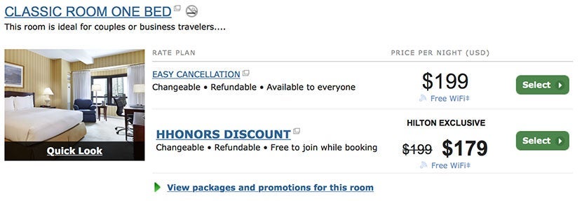 The amount of savings for your stay ultimately depends on which days you're booking — if you're traveling on weekdays, you'll get a 3% discount, while you get 10% off on Friday-Saturday stays. It's probably still best to shop around, but keep in mind that stays purchased through third parties might not be eligible for all the perks that a direct booking with Hilton offers. Additionally, you might still be better off booking with other discounts, such as AAA rate, through the Hilton site.