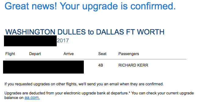 I earned Wells Fargo Go Far Rewards with the Wells Fargo Visa Signature Card. They can be redeemed for airfare at a flat rate of 1.5 cents per point (or 1.75 cents per point after $50,000 in annual spend on the card). The great news is that the airline treats these fares as paid, so I'll earn both elite-qualifying and redeemable miles as well as elite-qualifying dollars. I'm an AAdvantage Executive Platinum member, and my upgrade has already cleared for the three-hour IAD-DFW leg, so I'll be flying in first class for free! Believe it or not, this was the best itinerary to choose from when I looked at a combination of cost and routing efficiency.