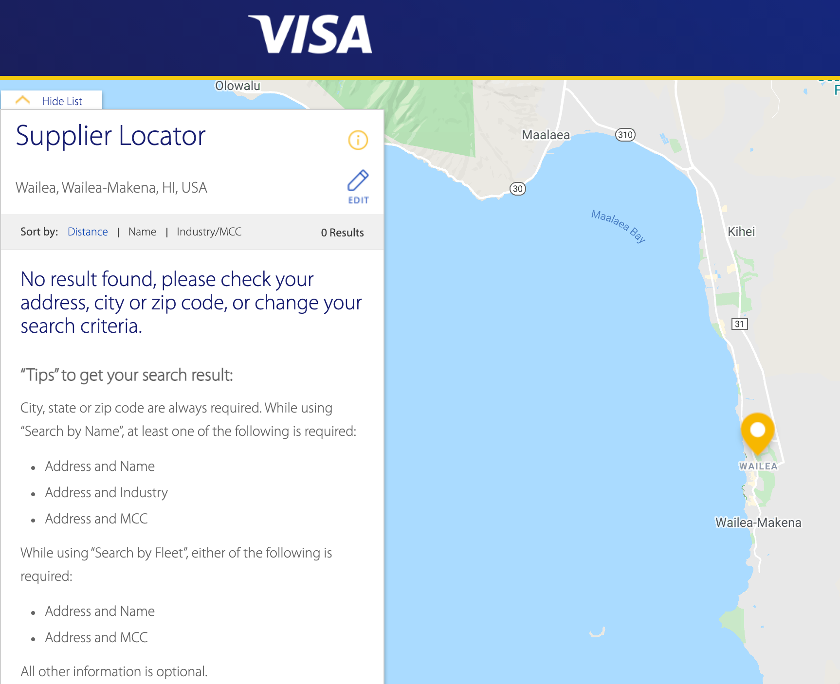 But if we look at another restaurant at the Andaz Maui, Ka'ana Kitchen, Visa can't find it. It's the same entity as the Andaz Maui. That's good. When you spend money at Ka'ana Kitchen, Visa should indicate to Capital One that you're at a hotel.