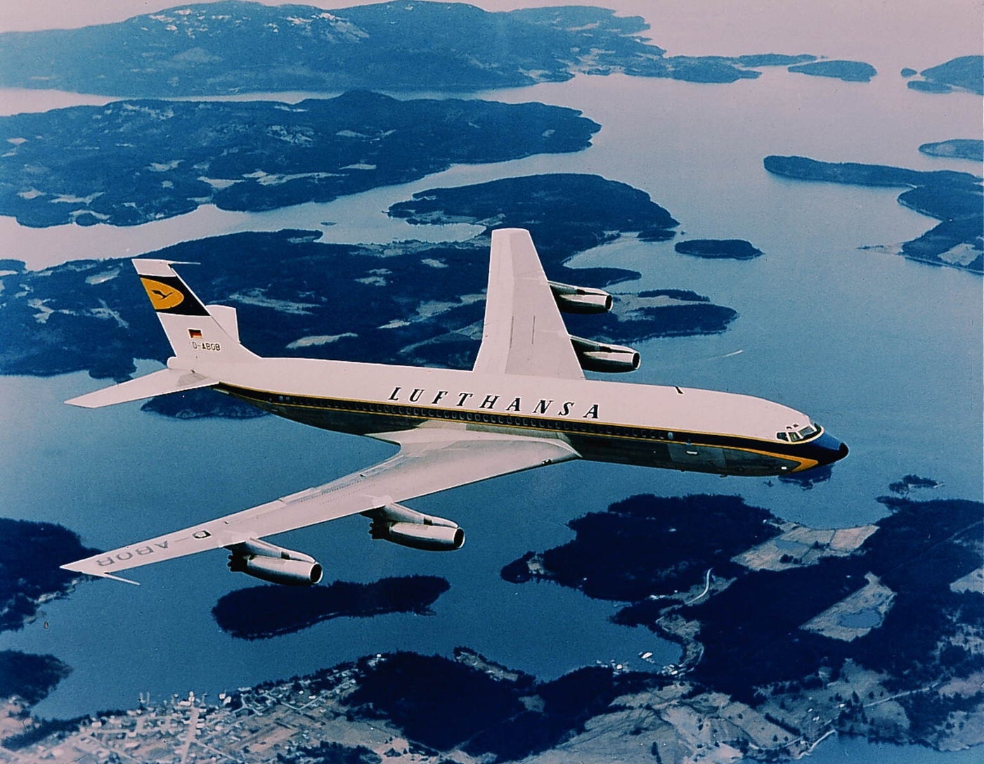 The first jet airplane arrived in 1959, a Boeing 707. Yellow appeared now larger, and on the tail.