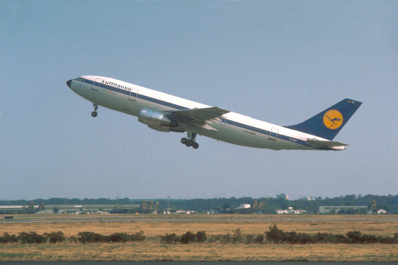 The white upper fuselage and grey belly remained unchanged until the 1990s, as seen on this Airbus A300 taking off.
