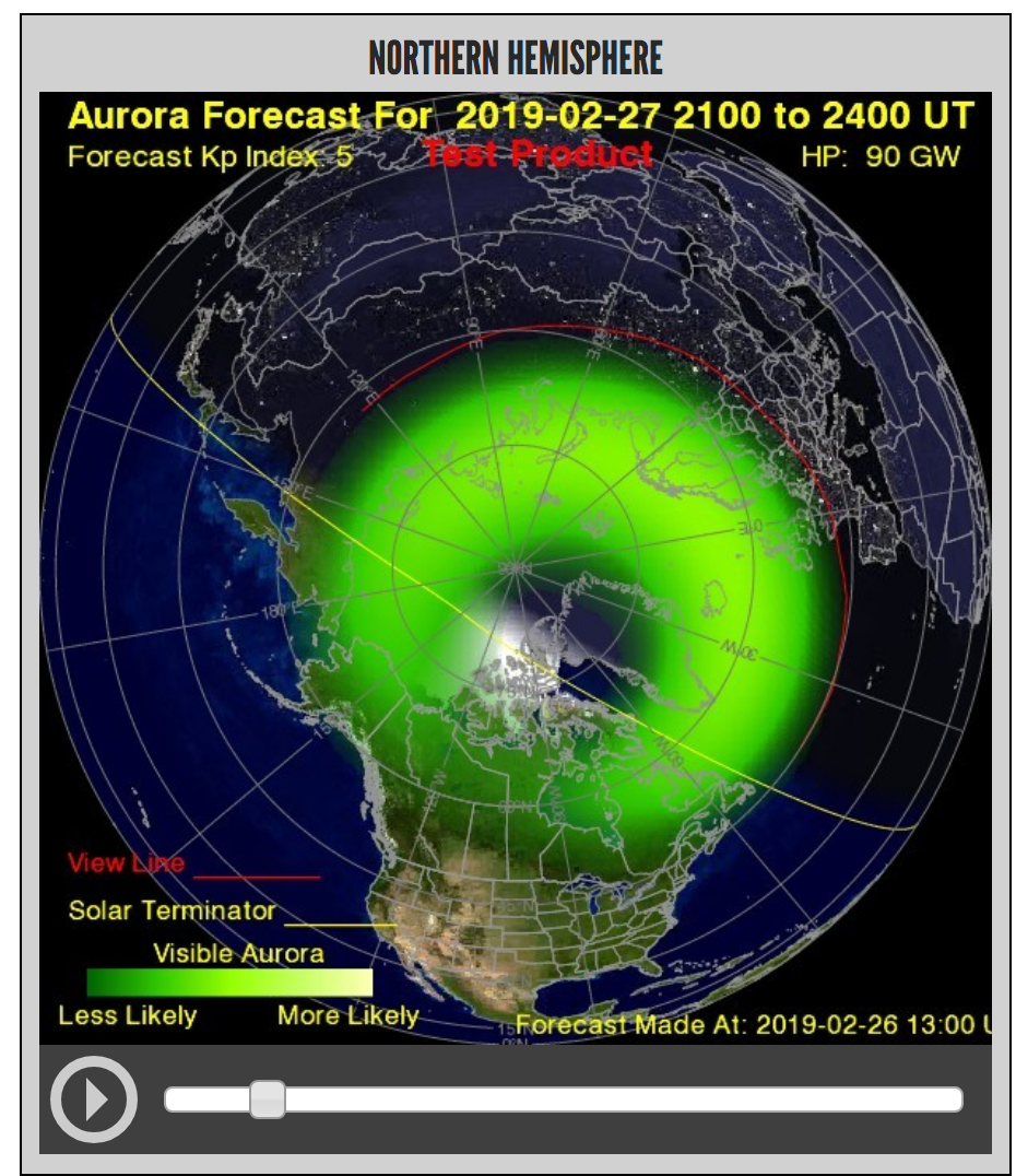 This week, according to the Space Weather Prediction Center, a geomagnetic storm (measured at a G1, or a minor storm) is expected from 4pm on Feb. 27 until approximately 10pm the same evening.