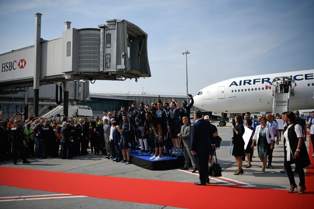 That's right, it's the French national soccer team returning from Moscow, with the actual World Cup in their hands, right there under your eyes. The very trophy you've seen them hoist the day before, in front of a TV audience estimated at half the population of the Earth.