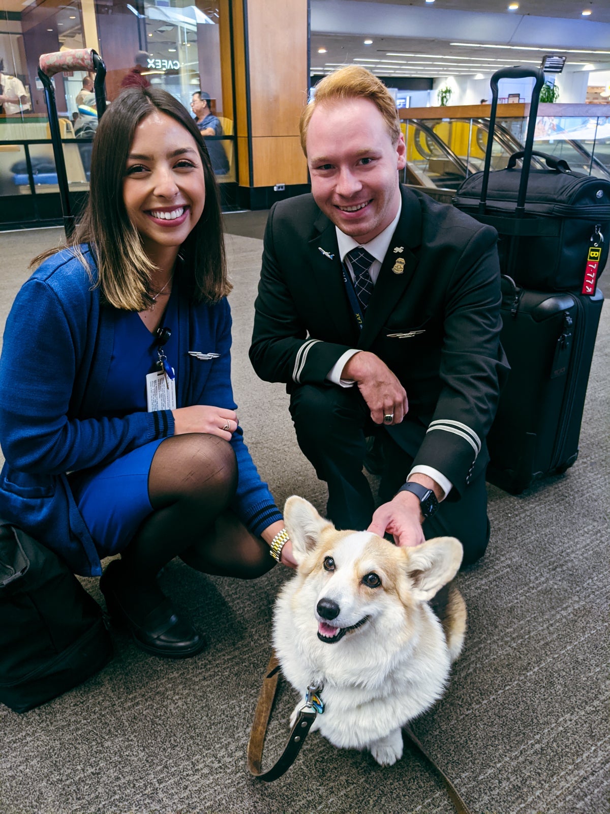United Airlines' Alyssa Sanchez and Matt Nardza stopped for an extended meet and greet with Lia. Shortly thereafter, an airline pilot stopped to offer Brixton some pats — and jokingly offered him a job as his copilot on an upcoming flight.