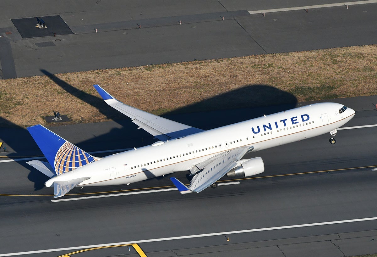 Ship 666, a Boeing 767-300ER, takes off from runway 4R, bound for London Heathrow.