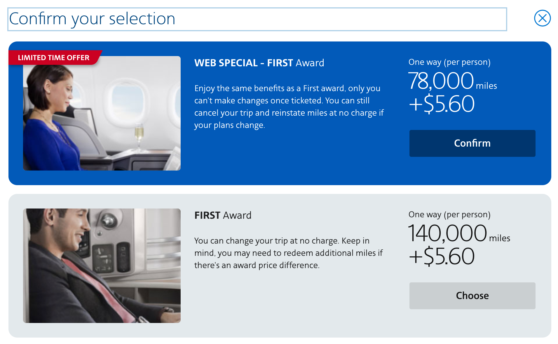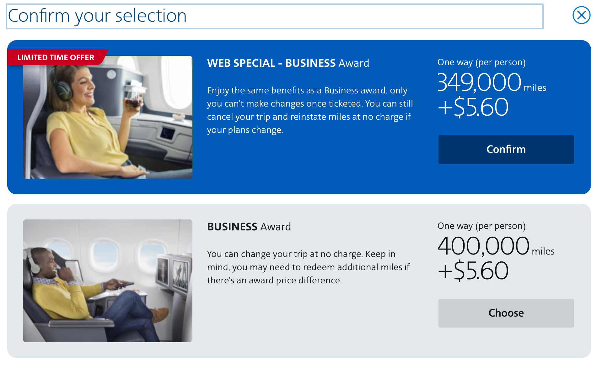 Web Specials are limited to American Airlines-operated flights and they are a bit more restrictive in that you can't make any changes. However, you can still refund them back to your account at no fee. I've seen significant discounts via Web Specials. That New Zealand flight I mentioned above was over 50,000 miles cheaper than any other option available to me.