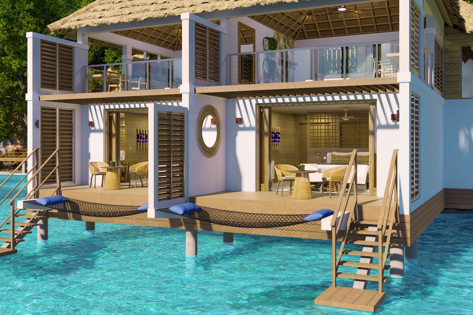 Did you know you don't have to travel all the way to the Maldives or Bora Bora to stay in an overwater bungalow or villa? Turns out there are actually quite a few overwater villas in the Caribbean. And in 2024, there will be an all-new one in St. Vincent and the Grenadines at the upcoming Sandals Saint Vincent. Set on a 50-acre stretch of land, the new resort will feature the adults-only brand's first two-story overwater bungalow, offering hammocks suspended over the water, a rooftop lounge with sweeping island and sea views and plenty of space to spread out.