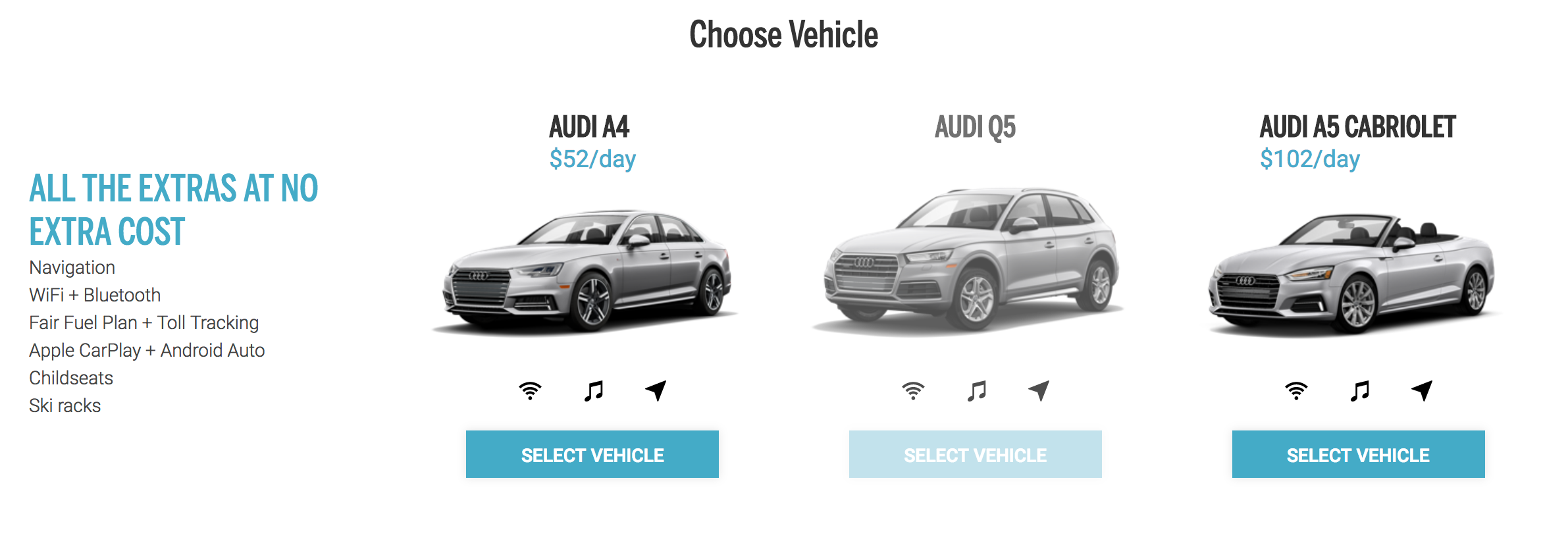 Prices for the Audi A5 Cabriolet start a $95 per day. This rate, as compared to a starting rate of $59 per day for the Audi A4 and $79 per day for the Audi Q5. With this announcement, Silvercar is also offering a promotion where you can get 30% off rentals of five days or more by using the promo code WEEKLY30.