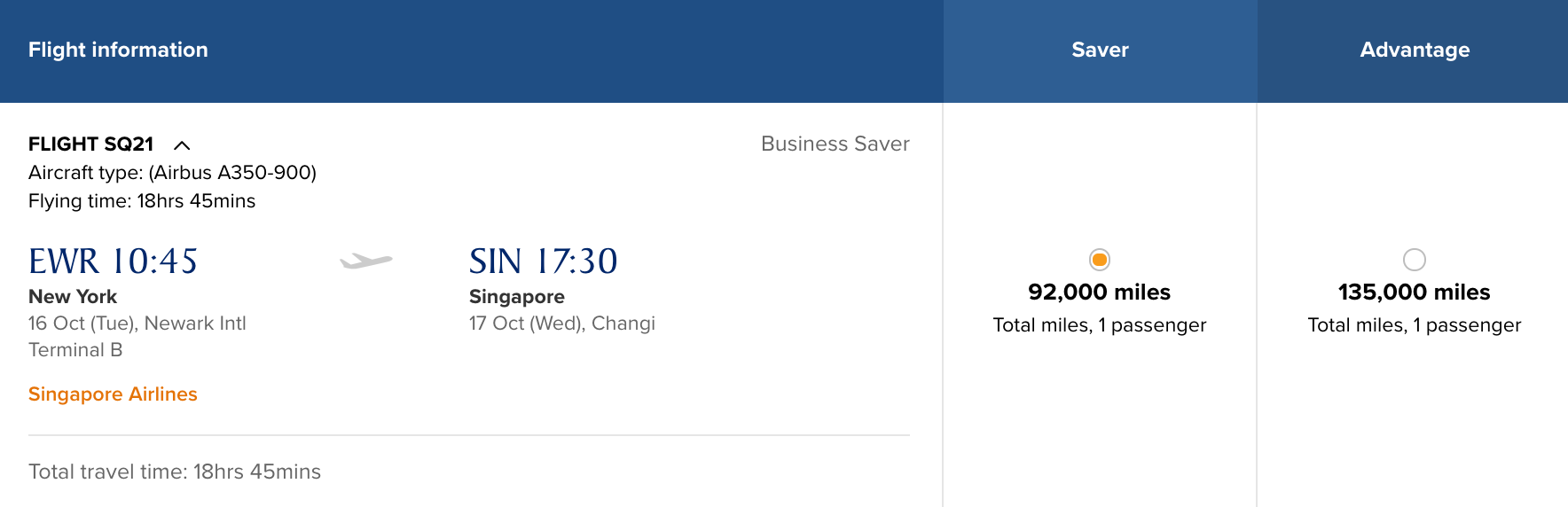 And of course there's saver space in premium economy, as there has been in the past. At 70,000 miles for premium and just 22,000 more for biz, I'd definitely splurge for business class — with some 19 hours on the plane, that works out to roughly 1,000 more miles per hour. A small price to pay for a lie-flat seat.