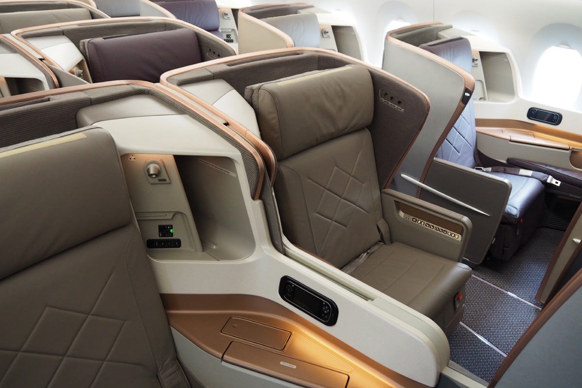 While this isn't my favorite Singapore business seat — that, you'll find on the new Boeing 787-10 — the A350 seats are decently comfortable, especially if you happen to snag a bulkhead row.
