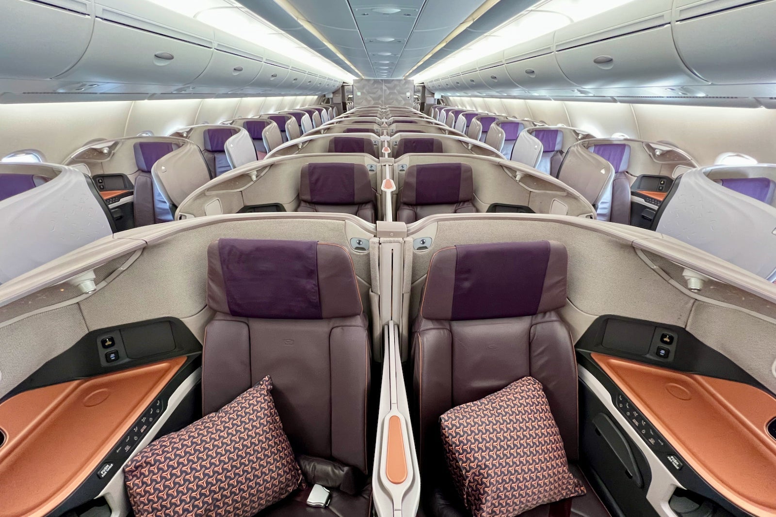 Those flying in business class – whether on the A380 or fuel-efficient Airbus A350 — will enjoy oversized pods that are some of the widest in the sky (though the bed itself is far from the world's best).